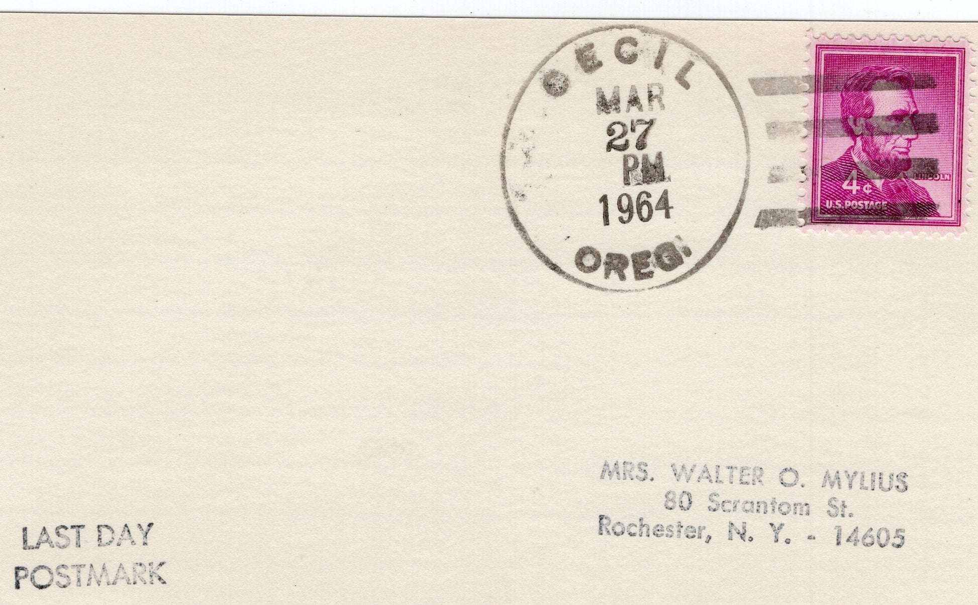 Cecil (1902-1964) 1964 4-bar on LD 3x5 card