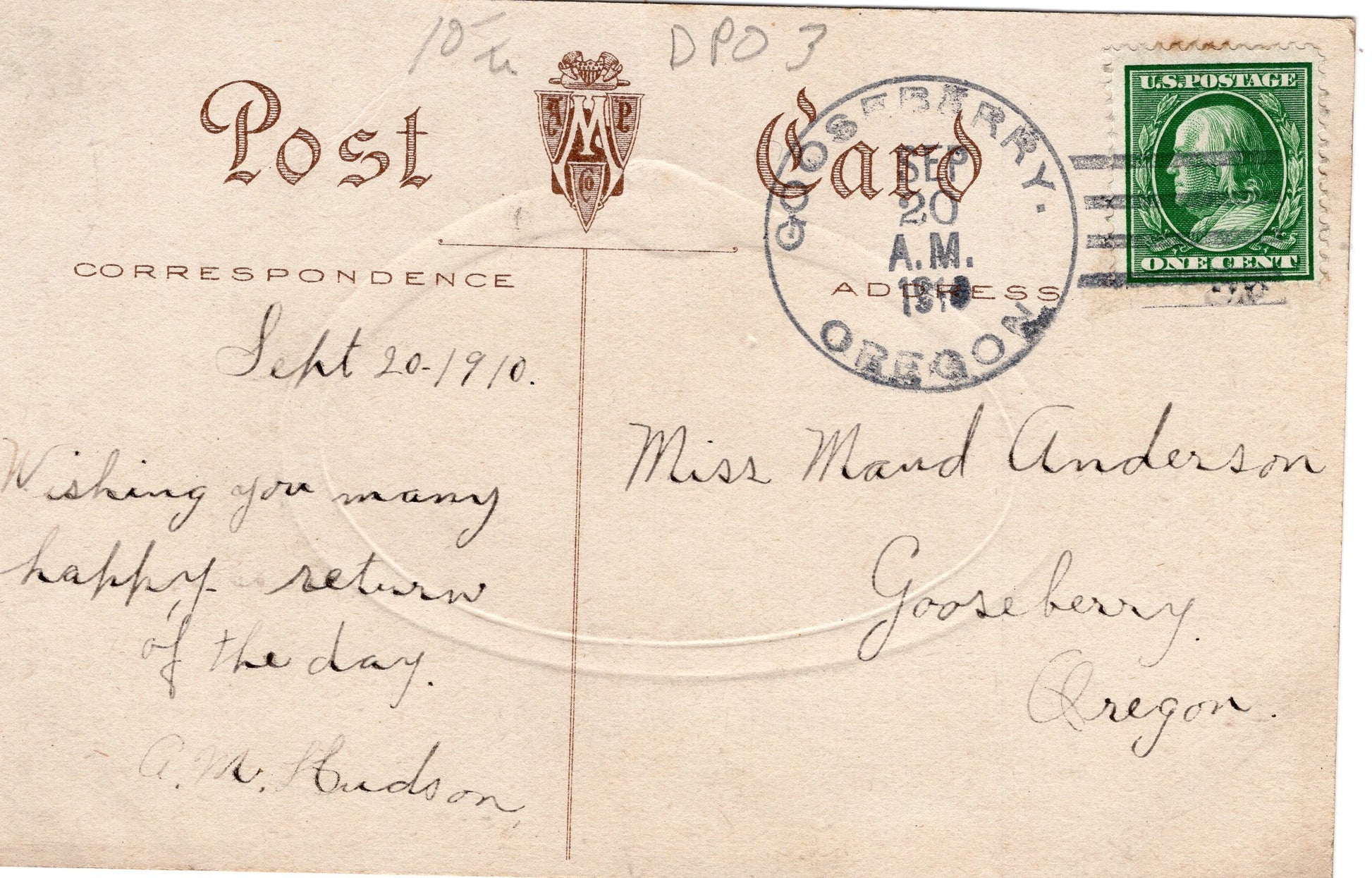 Gooseberry (1884-1918) 1910 4-bar on post card