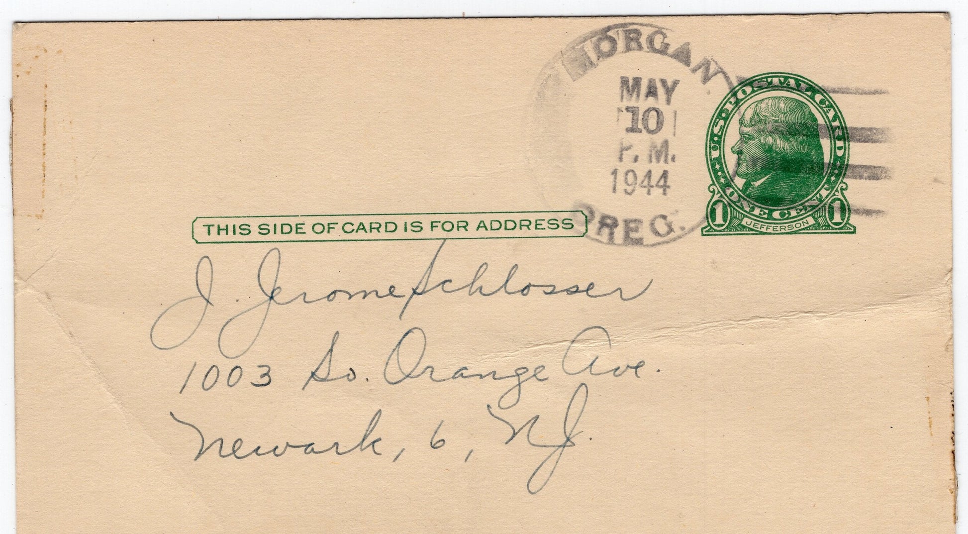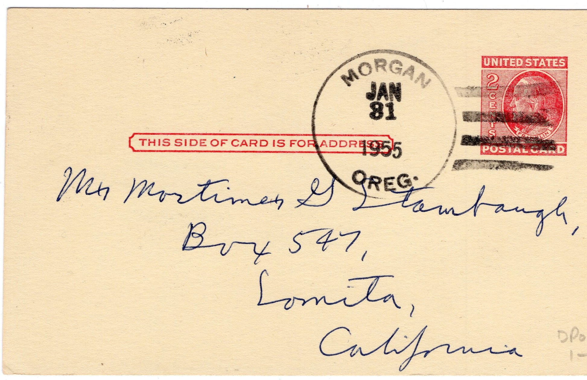 Morgan (1906-1955) 1917 4-bar on Registry Return Receipt; 1944 4-bar on Postal Card; 1955 4-bar on Postal Card