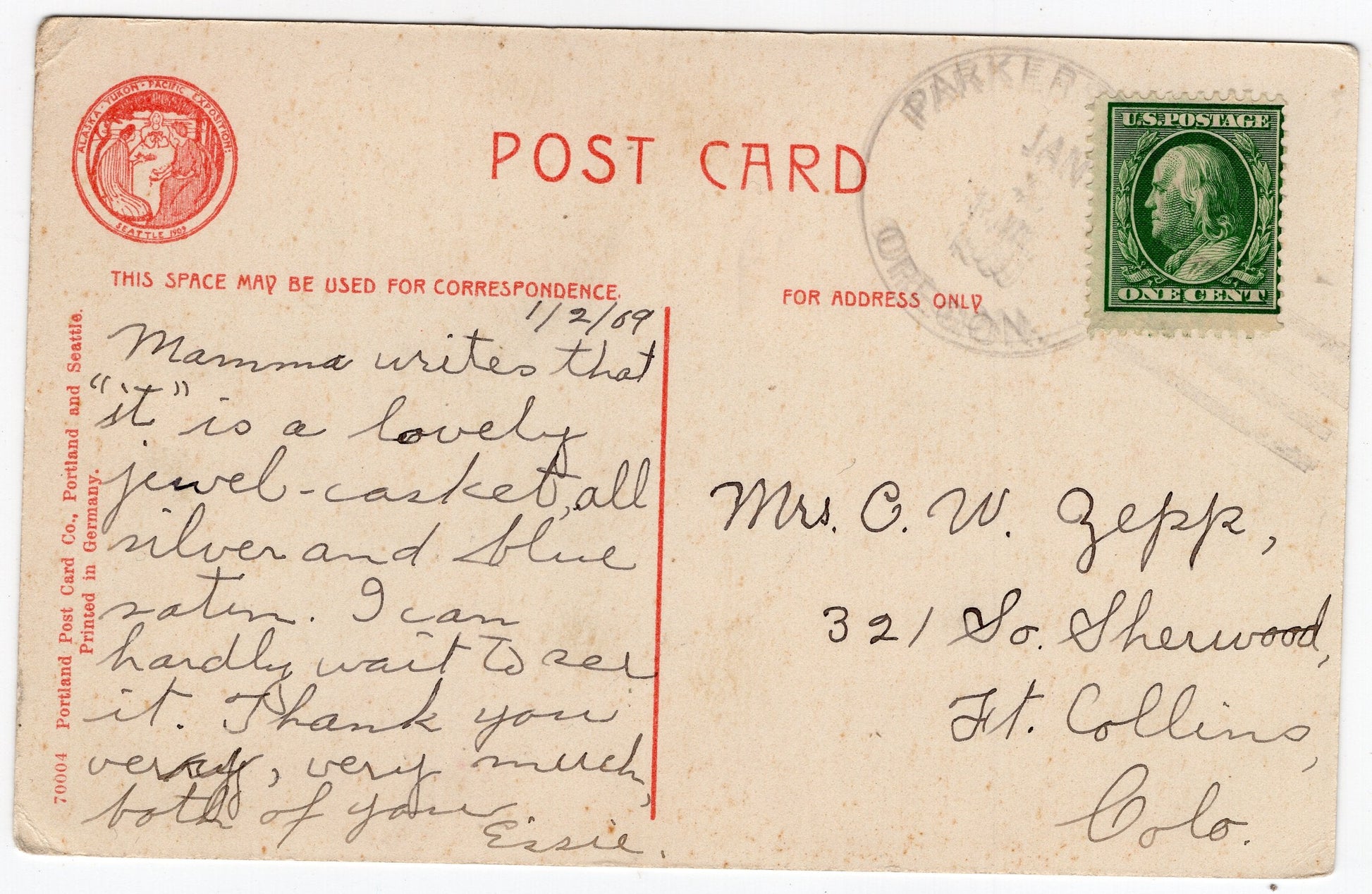 Parker Mills (1907-1925) 1908? 4-bar on post card