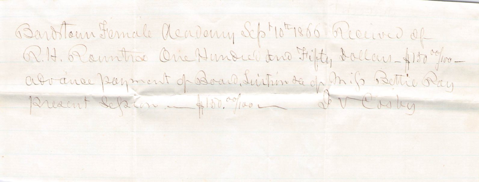 Bardstown light 1866 cds on small cover, contains receipt from “Bardstown Female Academy”.
