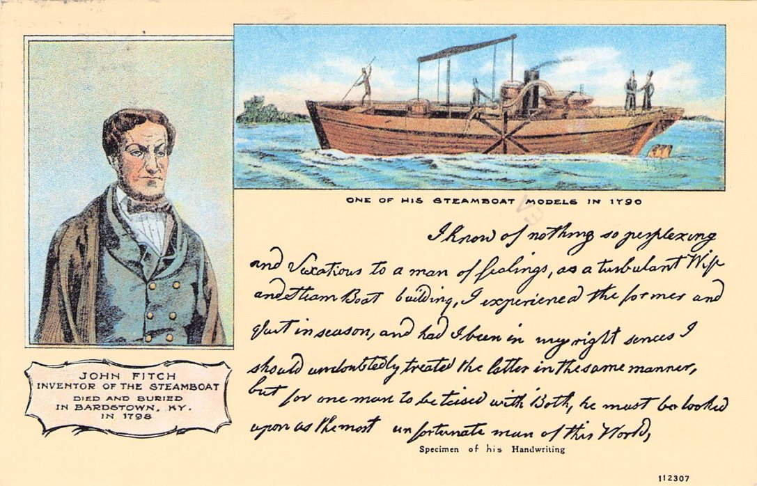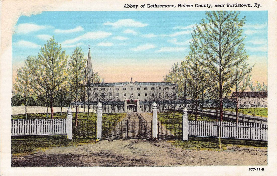 Post cards: Irvine’s Tourist court [linen]; Old Talbott Tavern [B&W]; Gethsemane Monastery [2views, one B&W, one c.1930 damaged; Nelson County Court House [linen]; 4 Federal Hill (My Old Kentucky Home) [2 exterior, 2 interior]; Wickland “Home of Three Governors“ [1967] ...“ [1967]; John Fitch, Inventor of the Steamboat