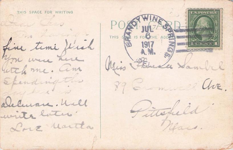 Brandywine Springs (1909-28) 1917 4-bar on post card, view of springs