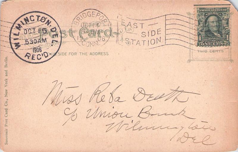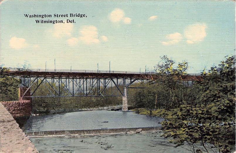 Granoque (1890-1944) 1912 4-bar on post card, view of Washington Street Bridge