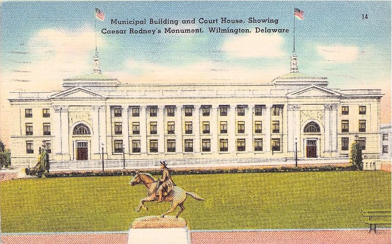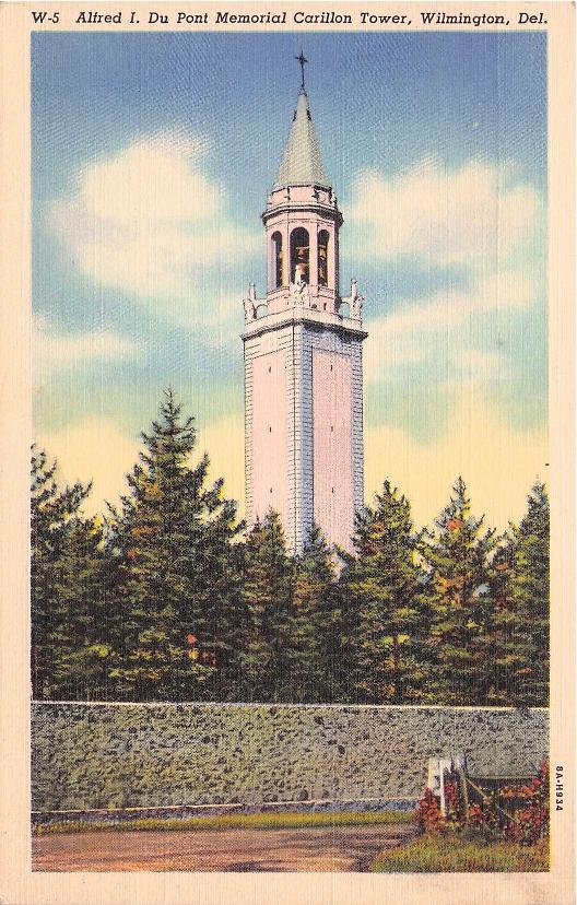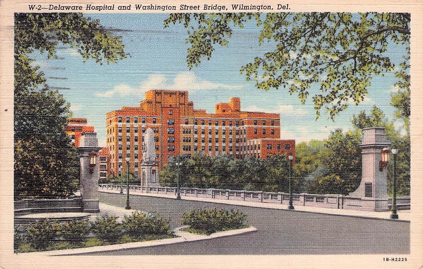 Post cards: Kent Manor Inn & Motel swimming pool [chrome]; Hotel Rodney [c.1930?]; “Municipal Building and Court House” [linen]; “Garfield Monument & Church of New Jerusalem” [1915]; Historical Society bldg. [1918]; Washington St. bridge [linen, 1910]: Court House [1951], Delaware Hospital [1943], Du Pont High School [linen]; old water tower (2), Longwood Gardens, Carillon Tower, Old Swede church (3 chrome views); Hagley Museum [2 chrome views, one Continental]; Black Powder mills; Old Swedes church; Children’s Chapel; Delaware Memorial Bridge