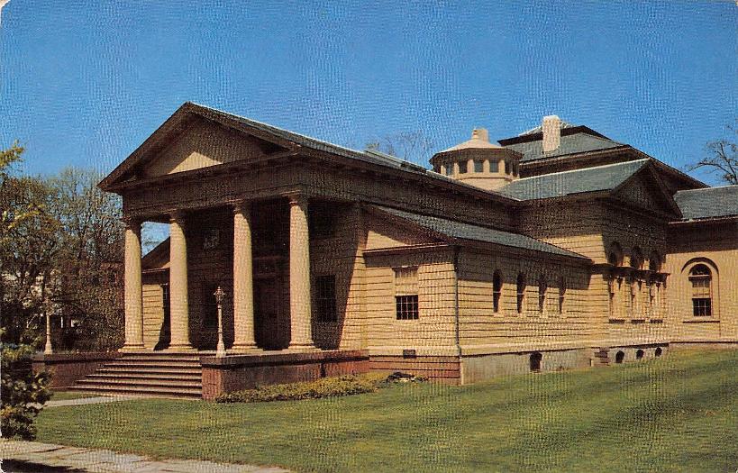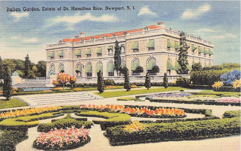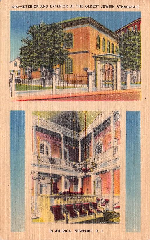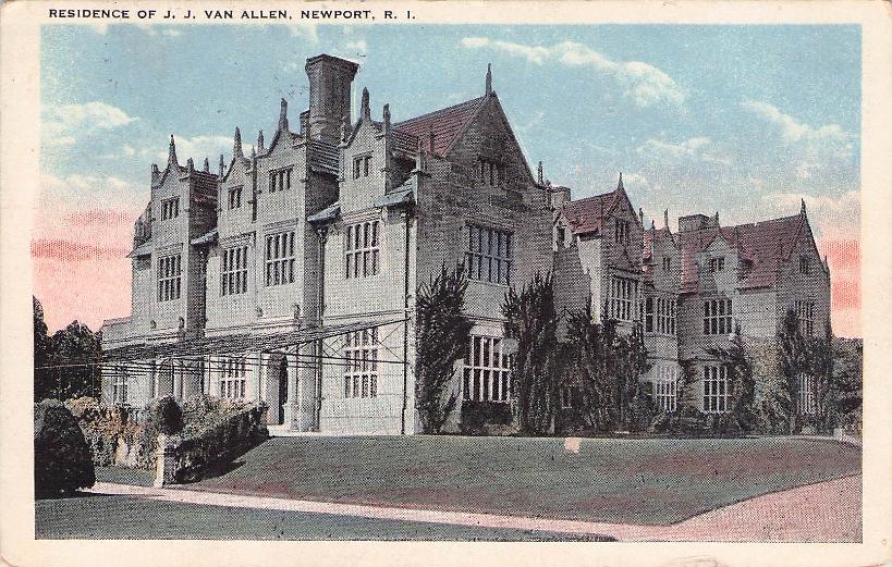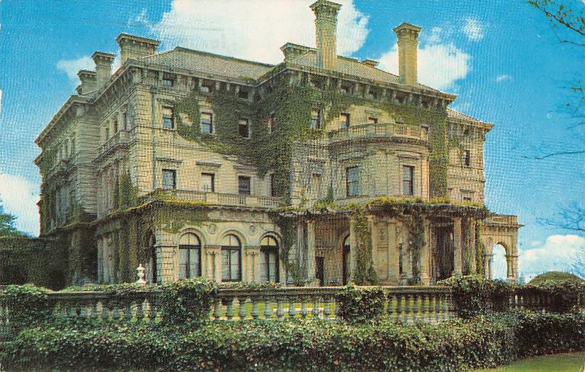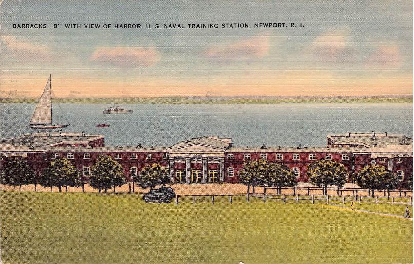 - Post cards: Hotel Viking buffet [chrome]; Court House [chrome]; “Interior and Exterior of the Oldest Jewish Synagogue [linen]; Cliff walk [chrome]; Belmont Memorial Chapel [B&W]; Island Cemetery Entance [c.1910]; “Beacon Rock, residence of E.D. Morgan” [1906]; “Clarendon Court, Residence of E.C. Knight” [c.1910]; “Italian Garden, estate of Dr. Hamilton Rice” [linen]; “The Breakers, Vanderbilt Mansion” [chrome] Wanton-Lyman-Hazard house (oldest house) [chrome]; “The Breakers Dining Room” [Continental]; three residences, Taylor, Jones, Drexel [linen]; “Residence of J.J. Van Allen” [1928]nts,” [lin; “Chetwood, residence of J.J. Astor” [linen]; “Bailey’s Beach, Exclusively for the Summer Resideen, 1939]; “The Redwood Library” [chrome, 1959]; “Tunnel on Cliff walk” [c.1910]; “Washington Square, Old Colony House in background” [chrome]; “Newport Harbor during yachting season (aerial) [Continental size]; “Aerial view of Fort Adams [linen]; Aerial view Naval War College [linen]; “Barracks ‘B’ with view of harbor” Soldiers’ mail [linen]; Hospital School [B&W]; Barracks B, cadets [B&W]; “Historic Bowen’s Wharf” [Continental]; First Presbyterian Church [chrome]