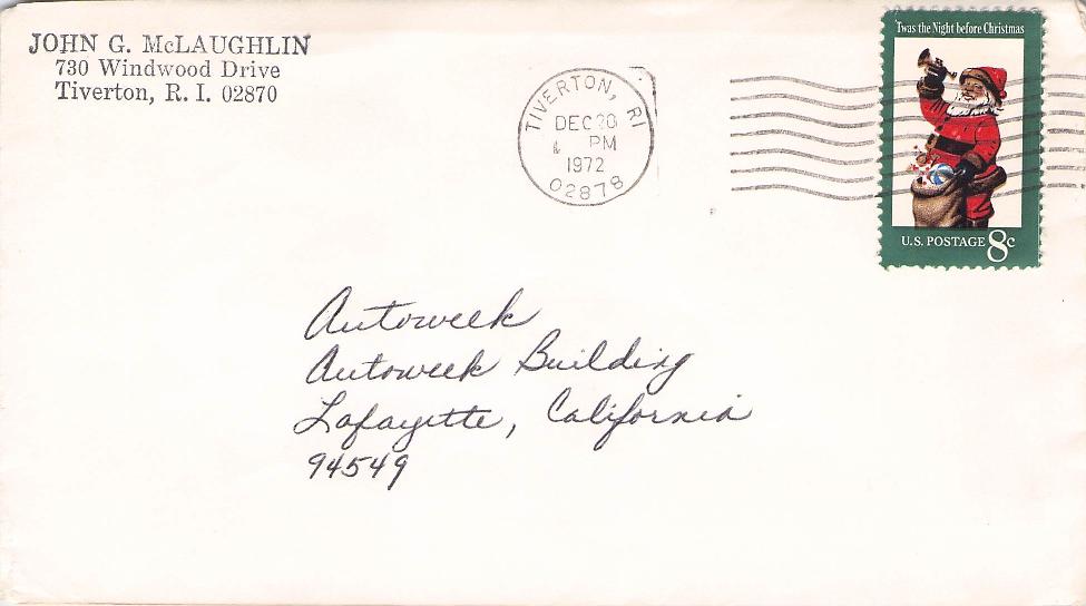 - Tiverton 1972 machine cancel on cover. Post card: Bridge to Fall River