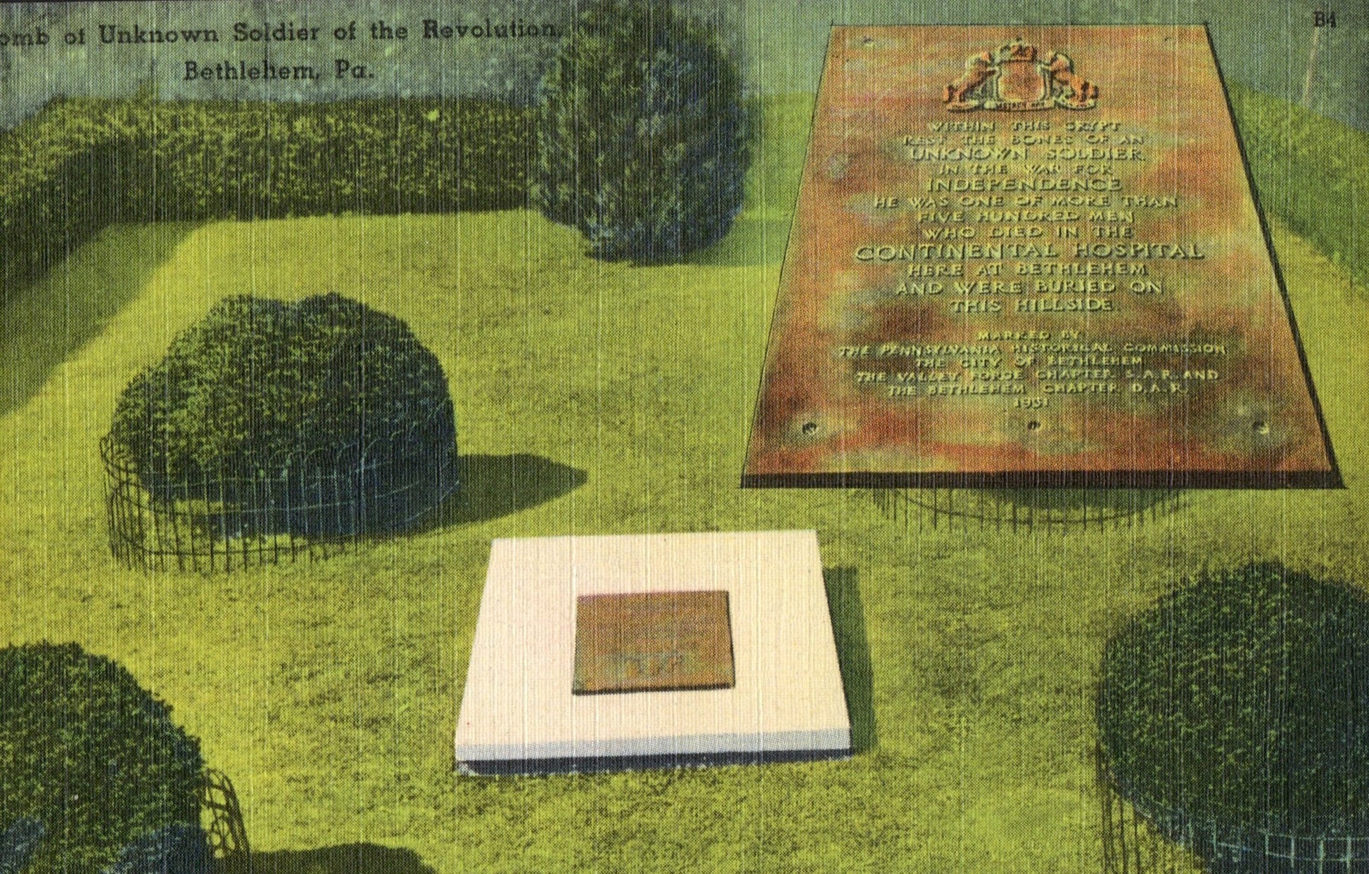 Post cards: Liberty High School [chrome]; Muhlenberg Medical Center [chrome]; Masonic Temple [linen ]; First House in Bethlehem [linen]; Death House and Moravian Chapel [c.1910, corner damage]; Tomb of Unknown Soldier [linen]