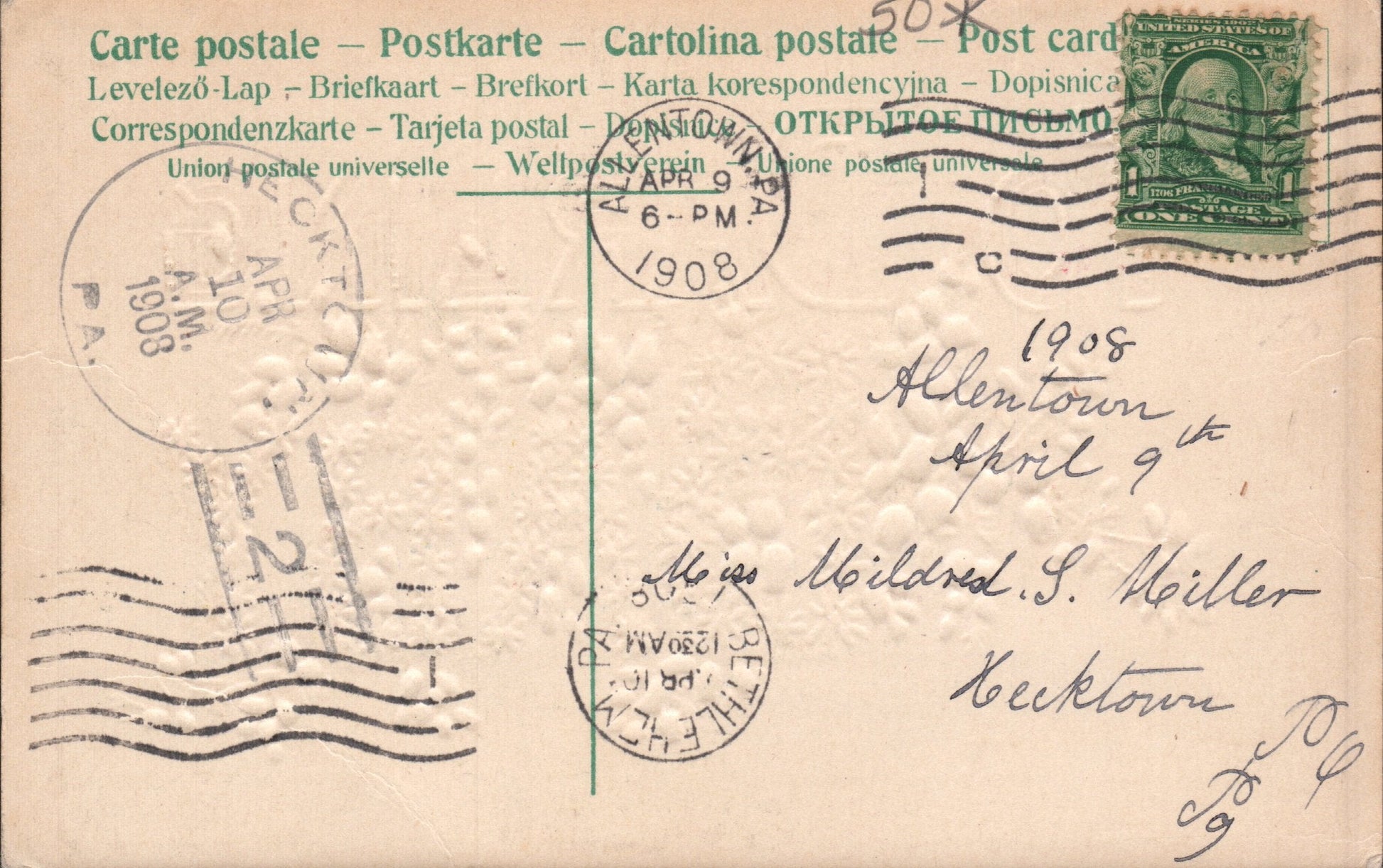 Hecktown light 1908 Doane 2 as rec’g strike on post card from Allentown