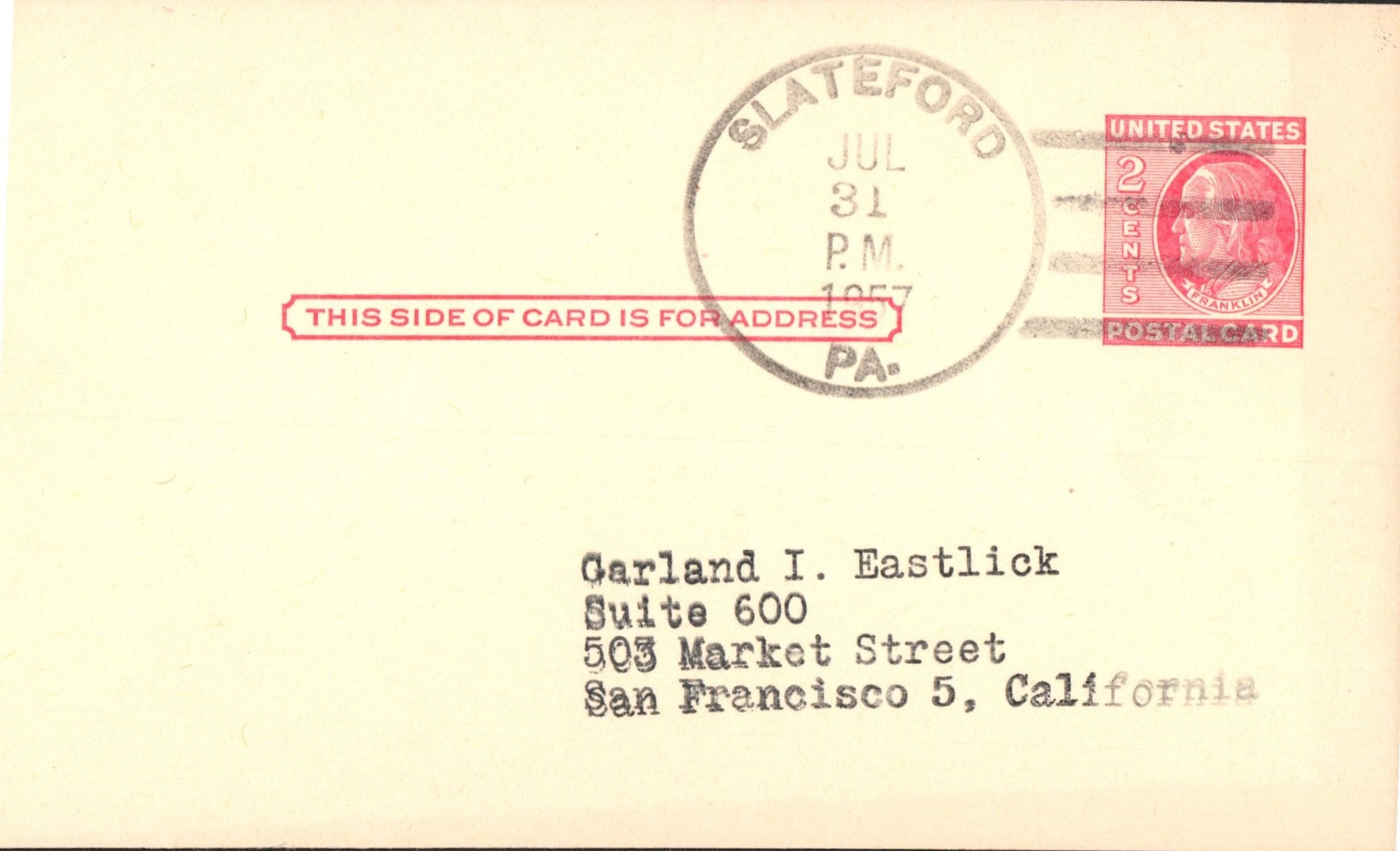 Freemansburg (1894-1957) 1957 machine cancel on cacheted LD cover