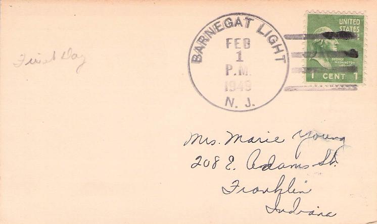 Barnegat Light 1949 4-bar on FD 3x5 card
