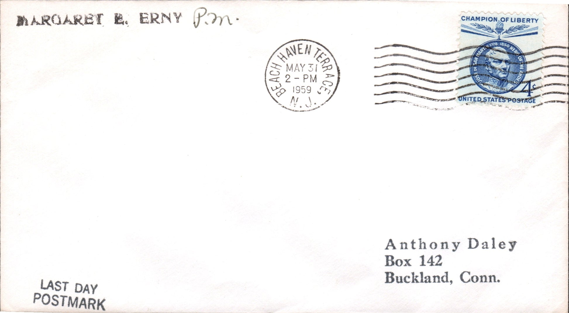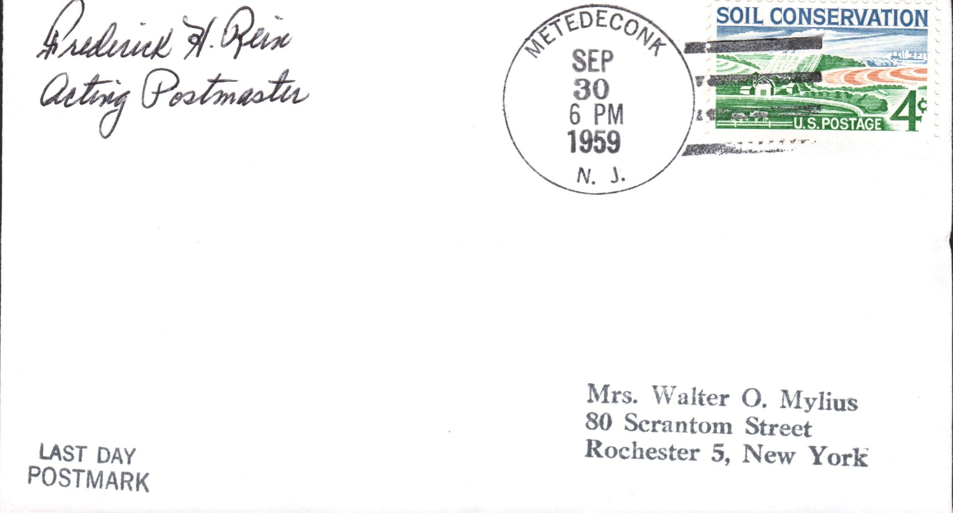 Metedeconk (1941-1959) 1959 4-bar on LD cover, PM autograph
