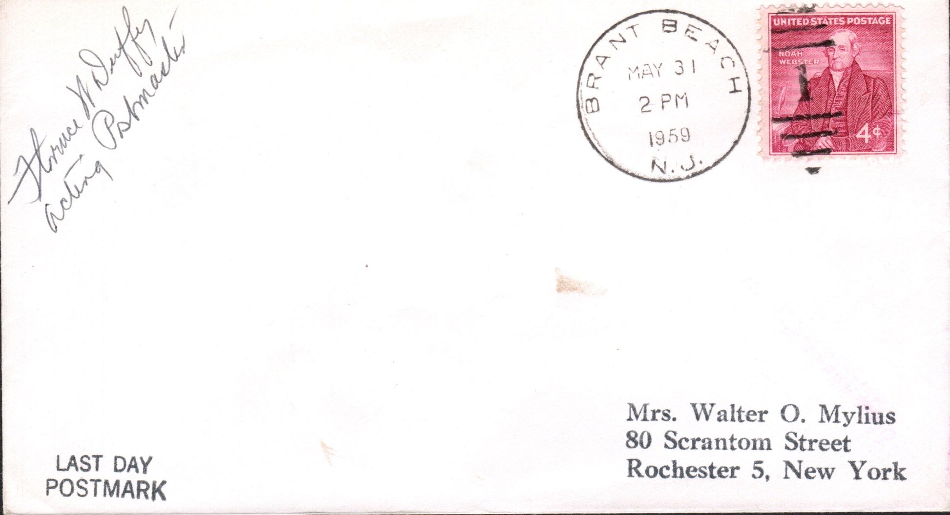 Brant Beach (1912-1959) 1959 duplex on LD cover, PM autograph