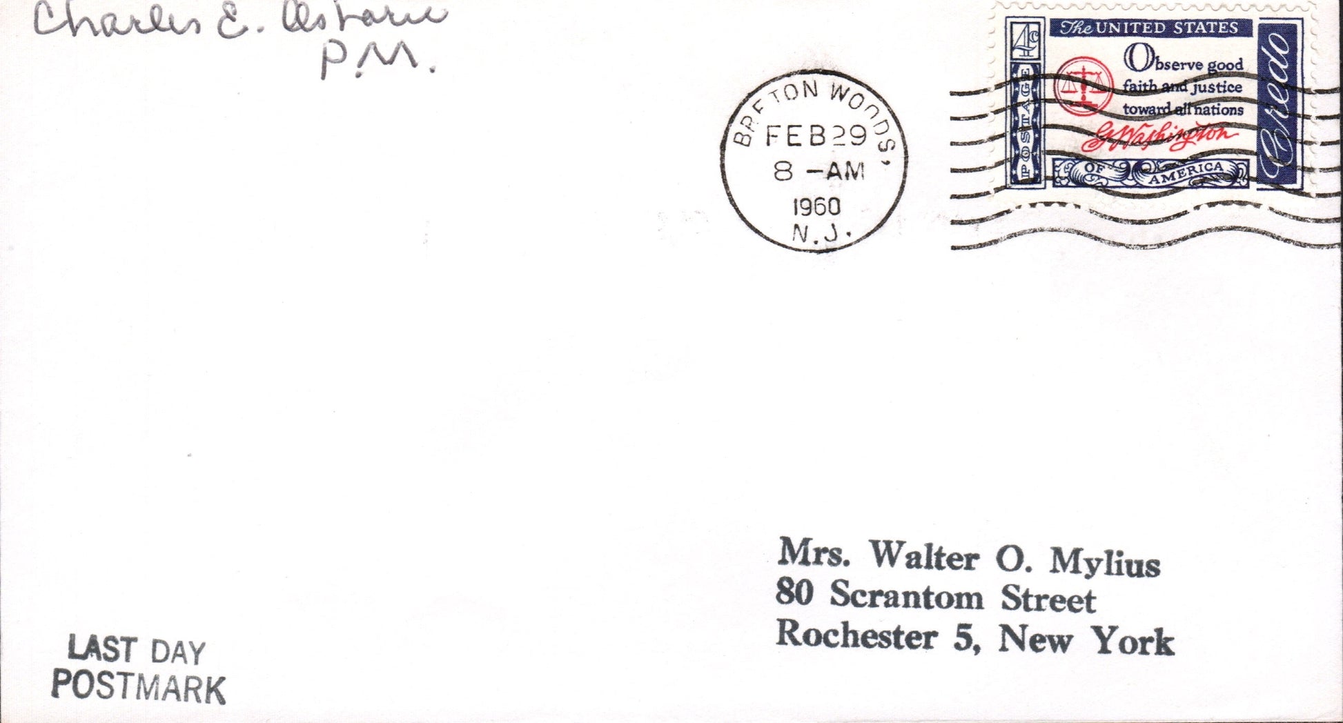 Breton Woods (1937-1960) 1960 machine cancel on LD cover, PM autograph