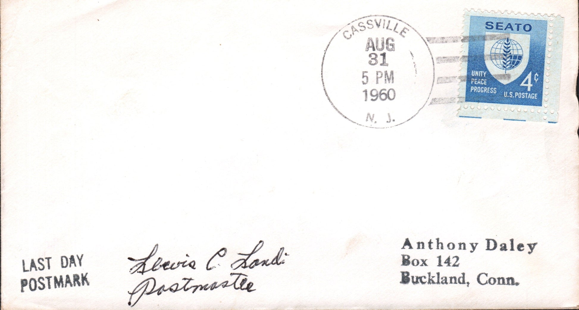 Cassville (1837-1960) 1960 4-bar on LD cover, PM autograph