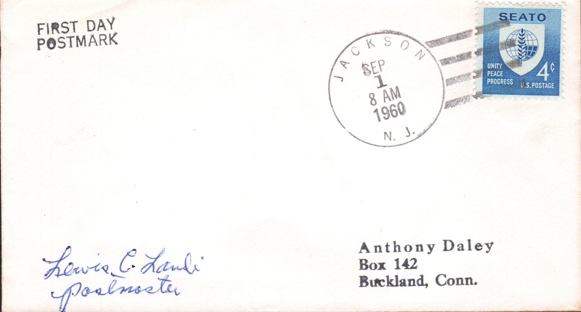 Jackson 1960 4-bar on FD of office cover, PM autograph; 1970 machine cancel on cover