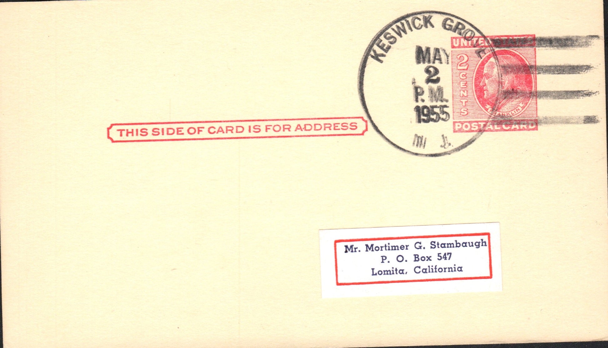 Keswick Grove (1913-1955) 1955 4-bar on cover-sized card
