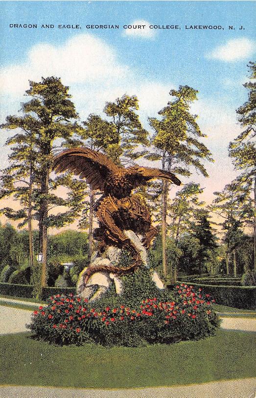 Lakewood Post cards: Boathouse & lake [c.1910]; “Dragon and Eagle, Georgian Court College” [c.1940]