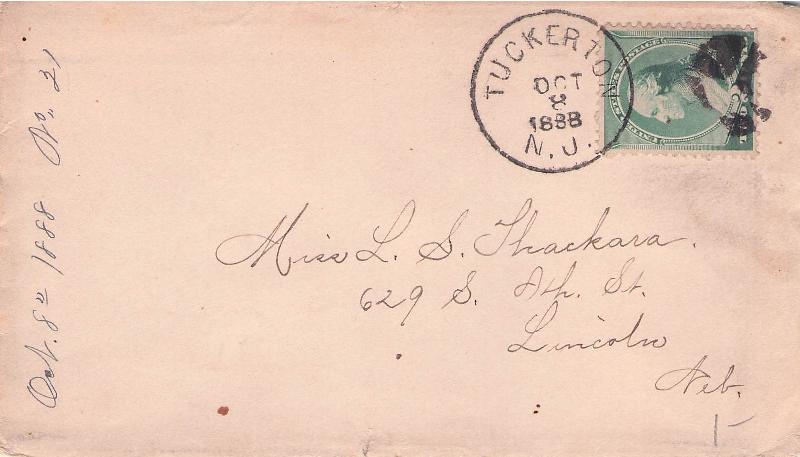 Tuckerton Nice 1888 cds on cover; 1906 duplex on post card