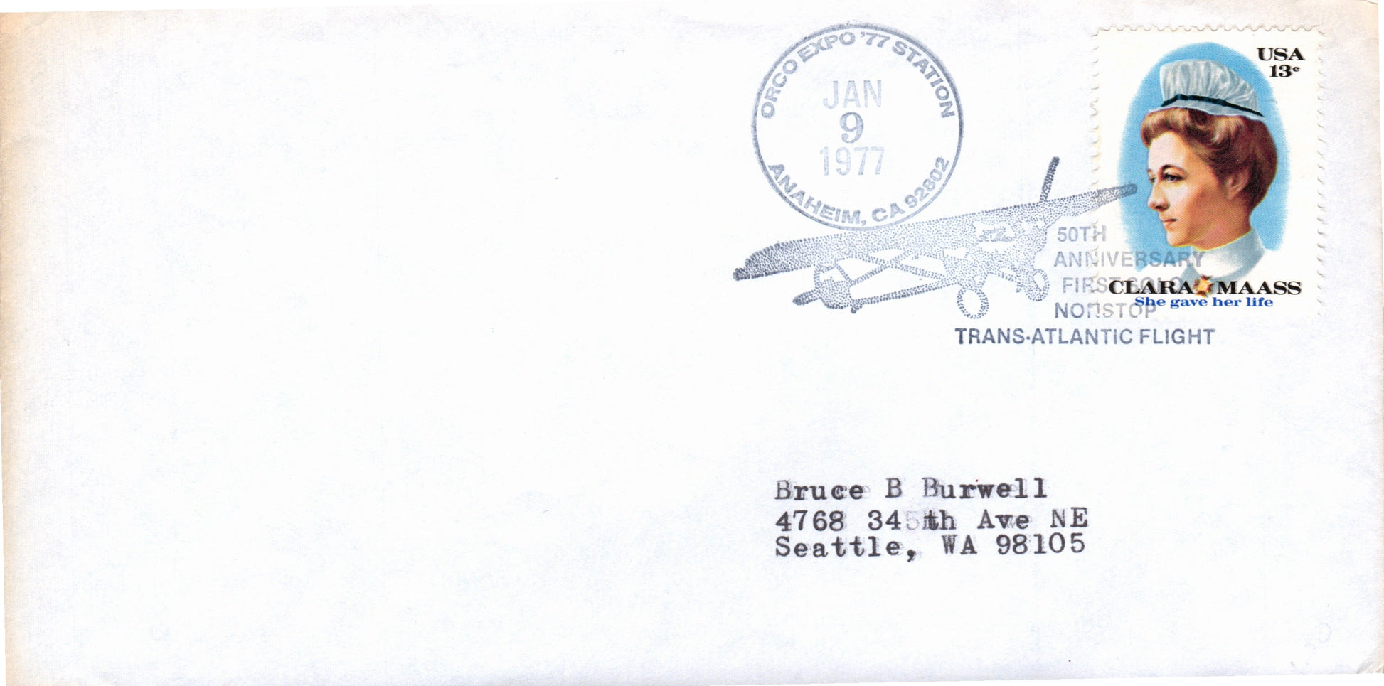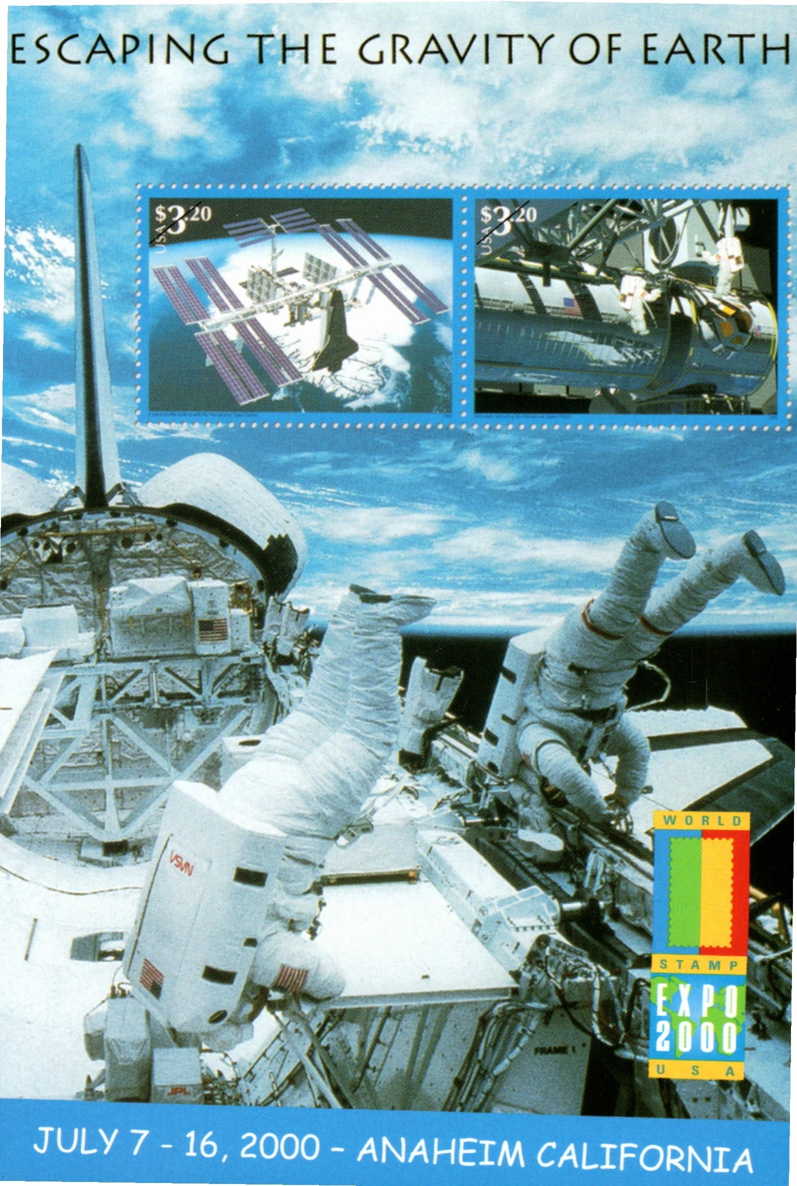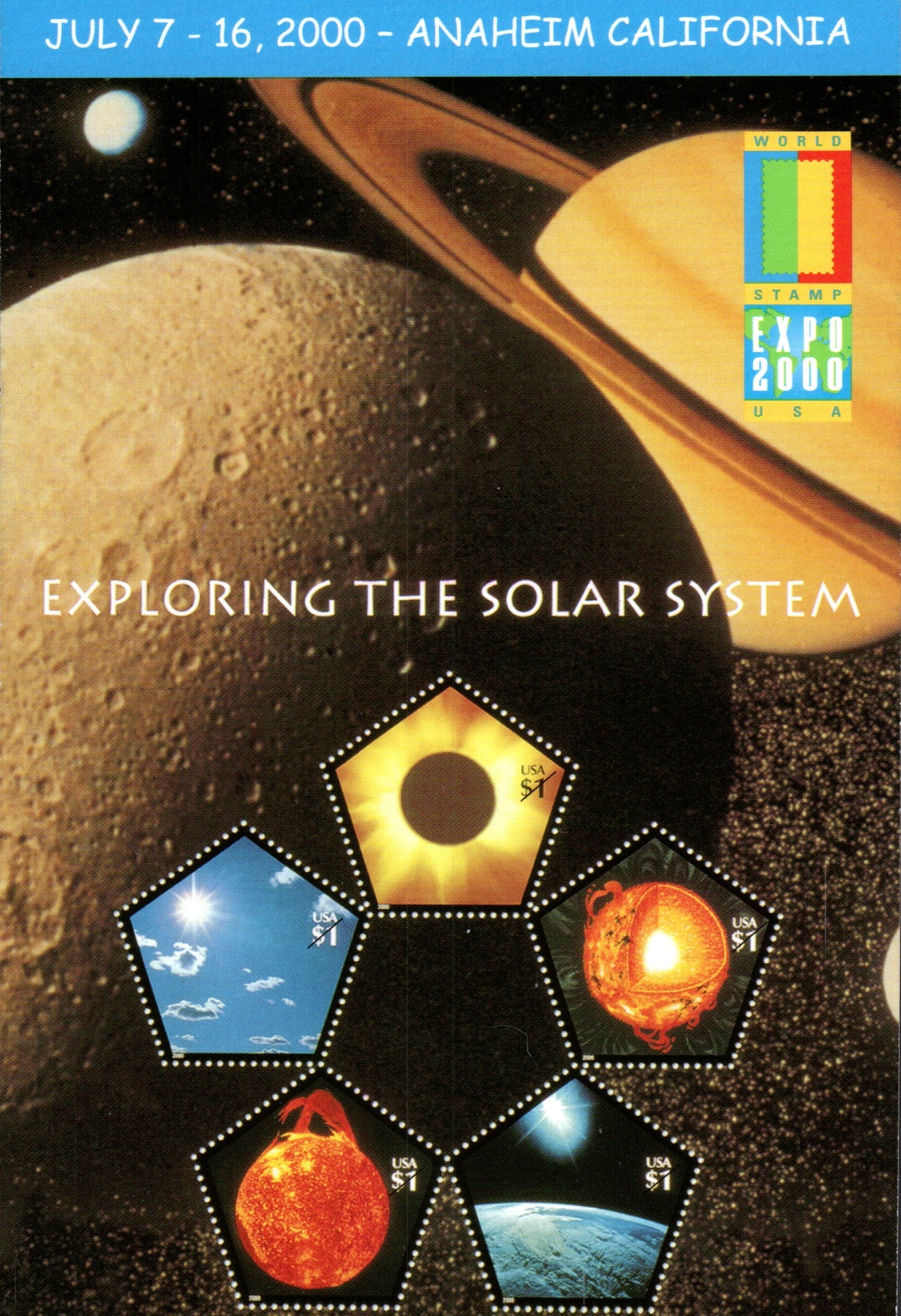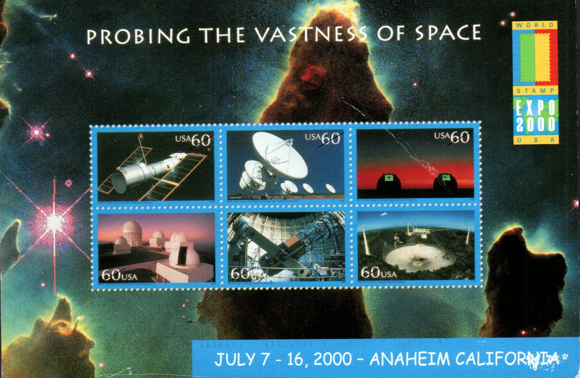Anaheim 1963 machine cancel on 3x5 card; Anaheim EXPO ’77 Station 1977 pictorial cancel on cover; Post cards: EXPO 2000 space cards [4 Continental cards]