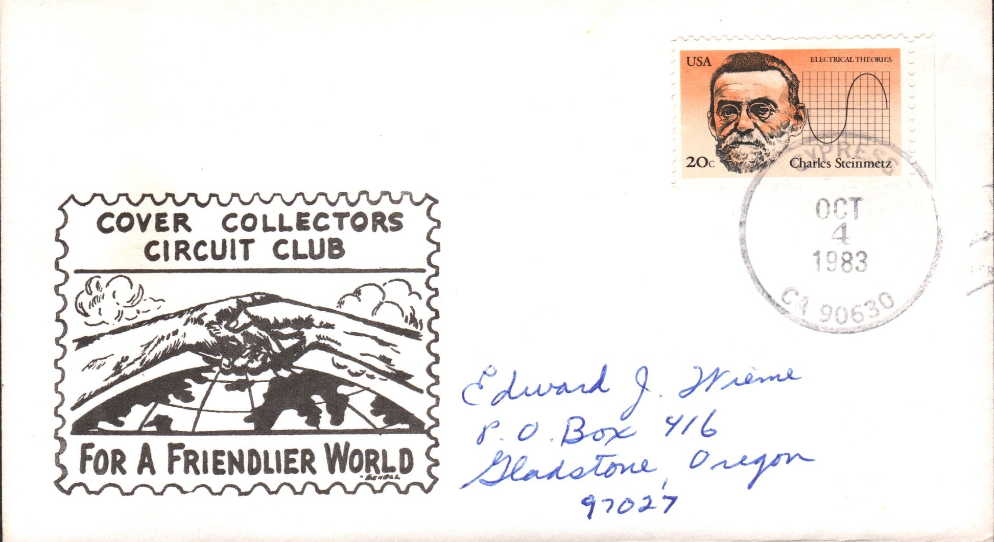 Cypress 1983 4-bar on cacheted cover, Cover Collectors Circuit Club