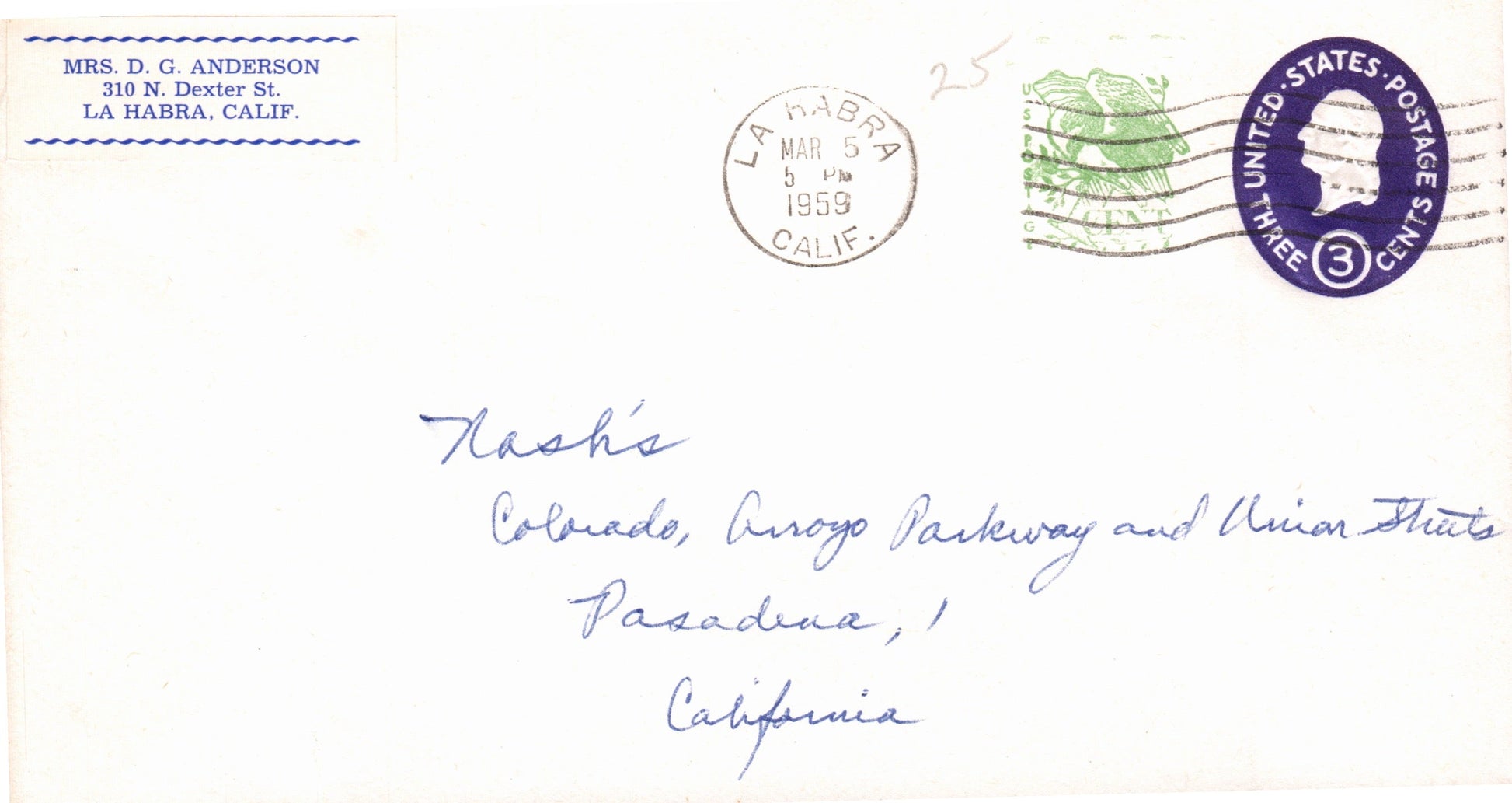 La Habra 1959 machine cancel on cover
