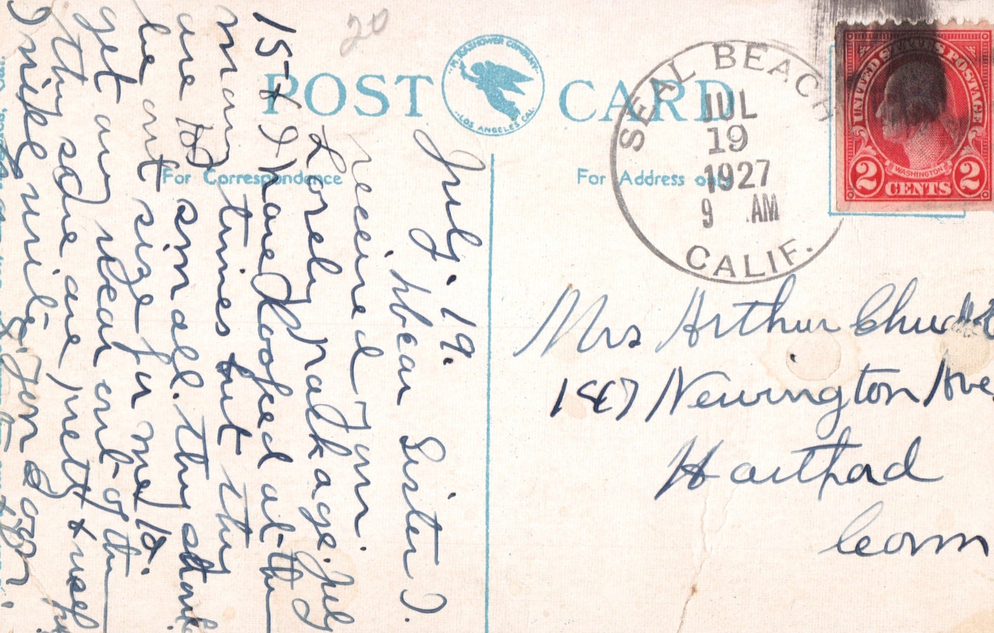 Seal Beach 1927 4-bar on post card
