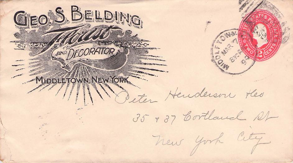 Middletown 1899 duplex on cover w/ fancy corner “Geo. S. Belding, Florist and Decorator”