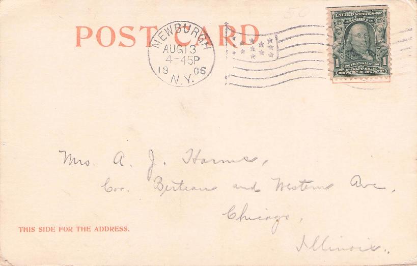 Newburgh 1906 Flag cancel on post card; 1907 Flag Cancel on post card, “2” in bars; 1916? duplex on post card; 1939 machine cancel on cover;