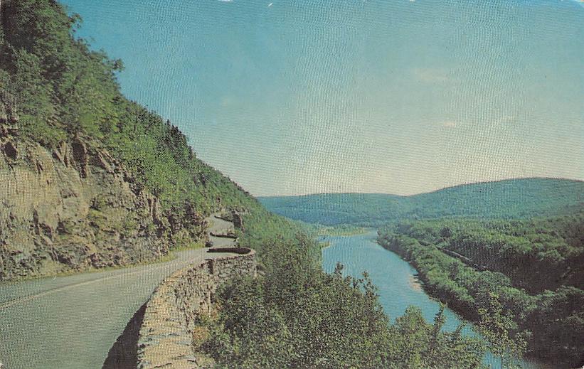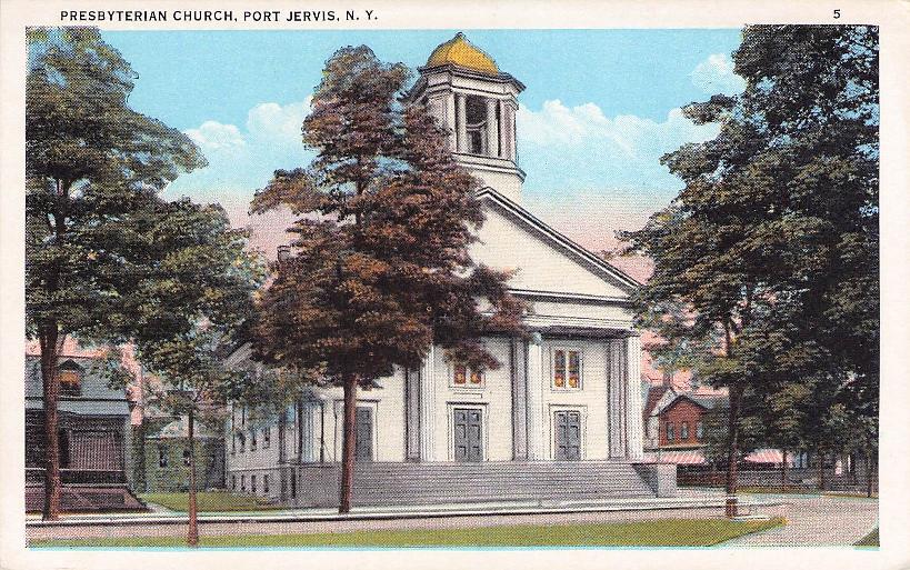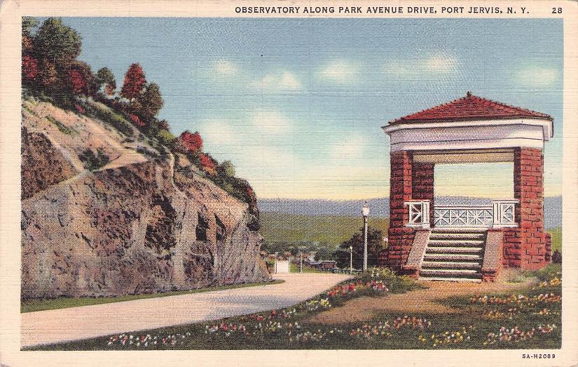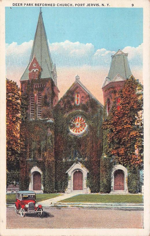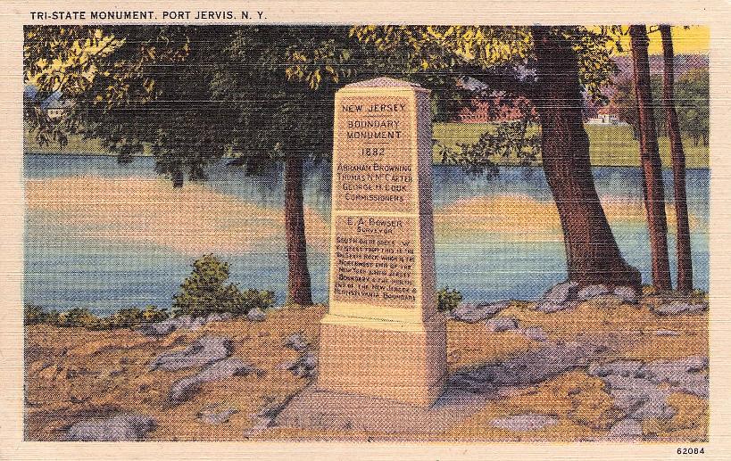Post cards: Deer Park Reformed Church [white border & 1941 Narrowsburg NY pmk]; Observatory [white border, 1939]; Presbyterian Church [white border]; Delaware River view [chrome]; :Tr-State Monument” [linen]