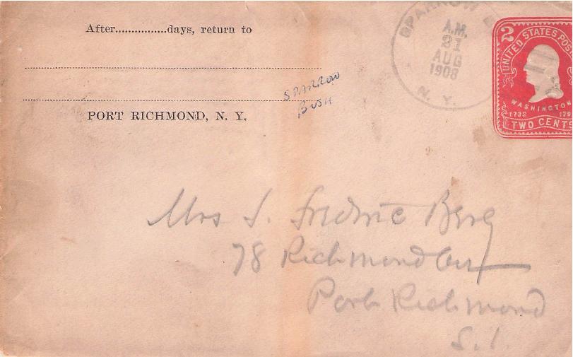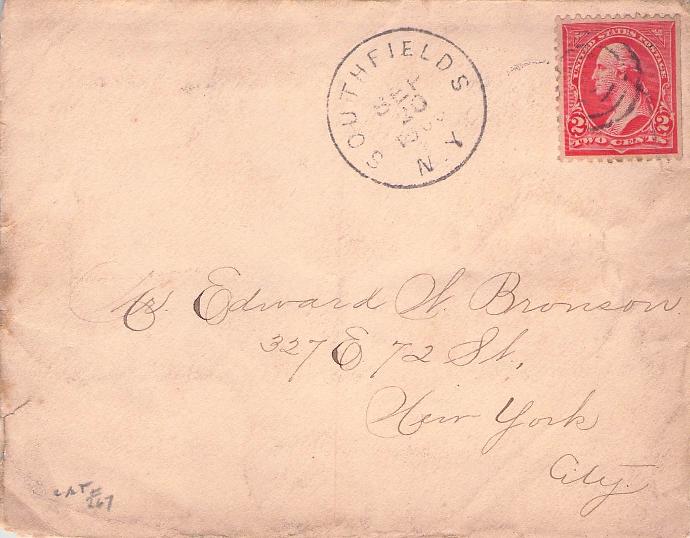 Southfields 1900 cds target killer on cover, “New York Sta. V Received”