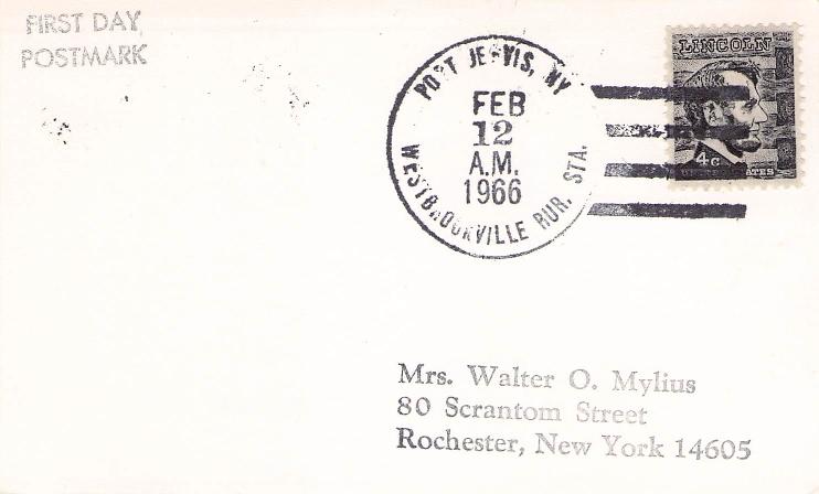 Westbrookville RS (Port Jervis) 1966 4-bar on First Day of RB 3x5 card