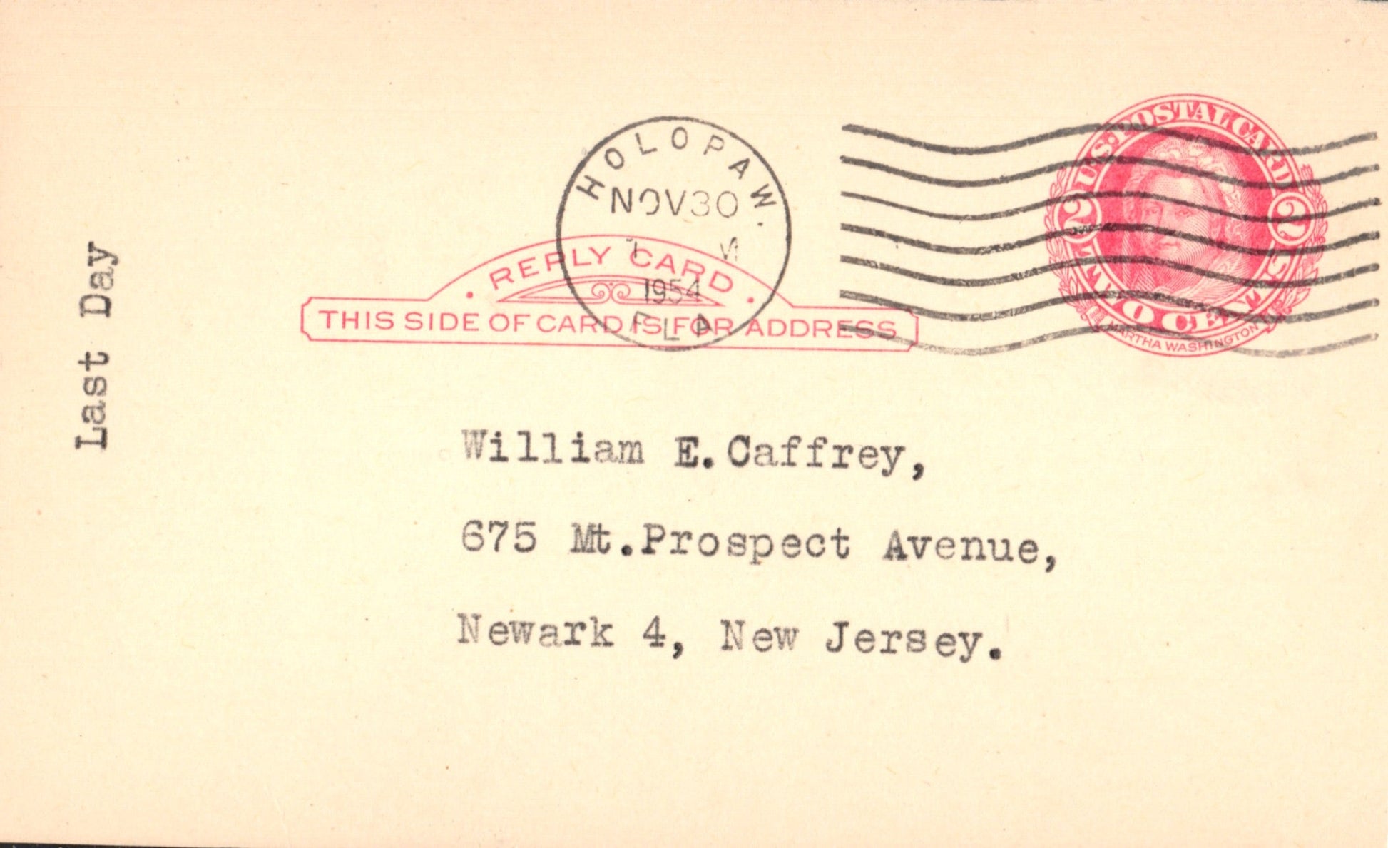 - Holopaw (1922-1954) 1954 machine cancel on Postal Card