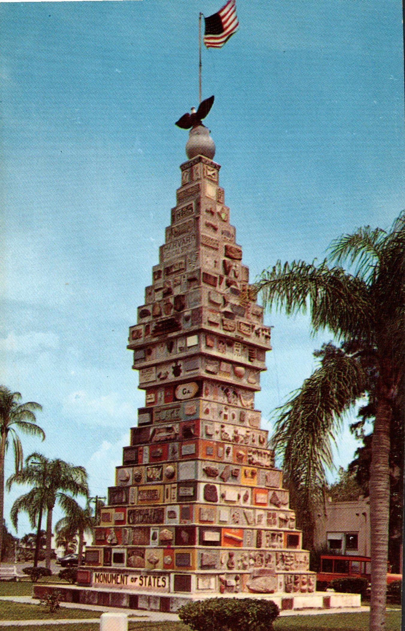 - Post cards: Terrace Red Carpet Inn [chrome]; Chuck and Bill,”Tree Ripe Fruit”[linen]; Monument of States [2 views, one linen, one chrome]