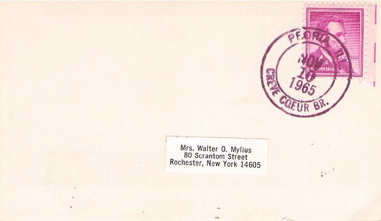 Creve Couer B (Peoria) 1965 round dater on 3x5 card