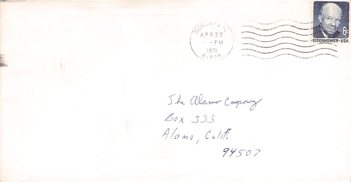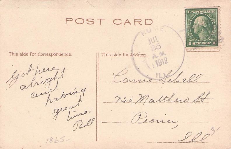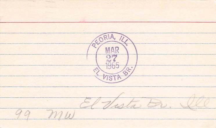 El Vista B (Peoria) 1965 round dater as backstamp on 3x5 card