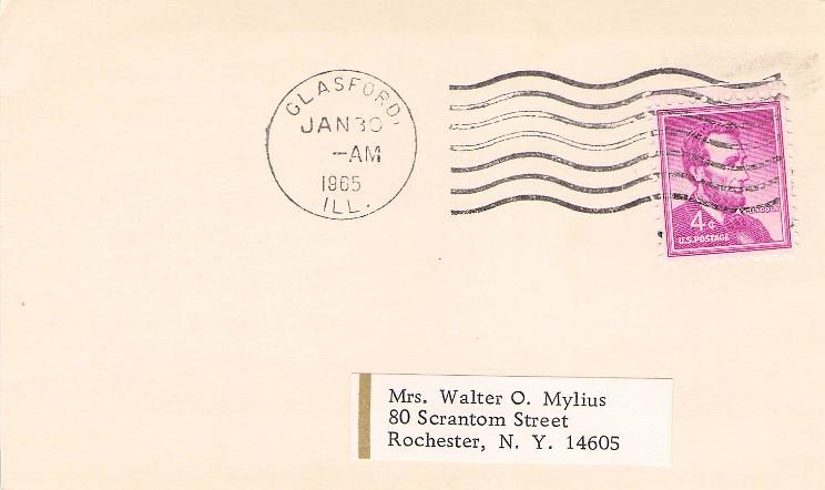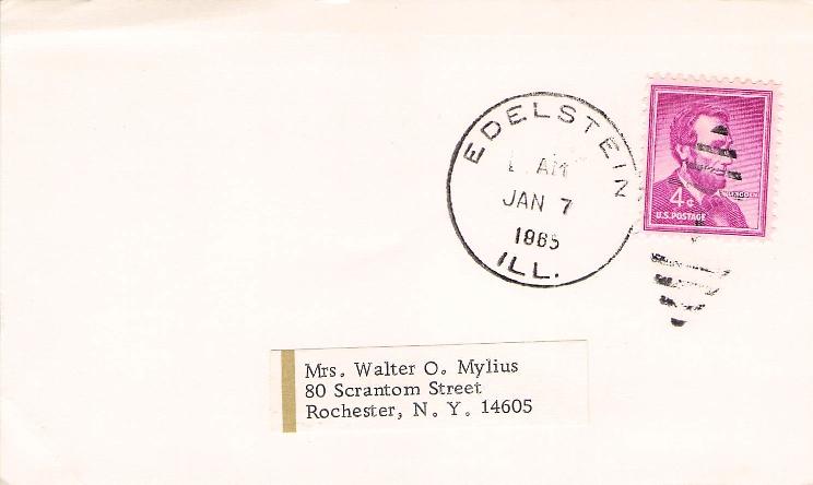 Edelstein 1901 cds on cover; 1908 duplex on post card; 1965 duplex on 3x5 card