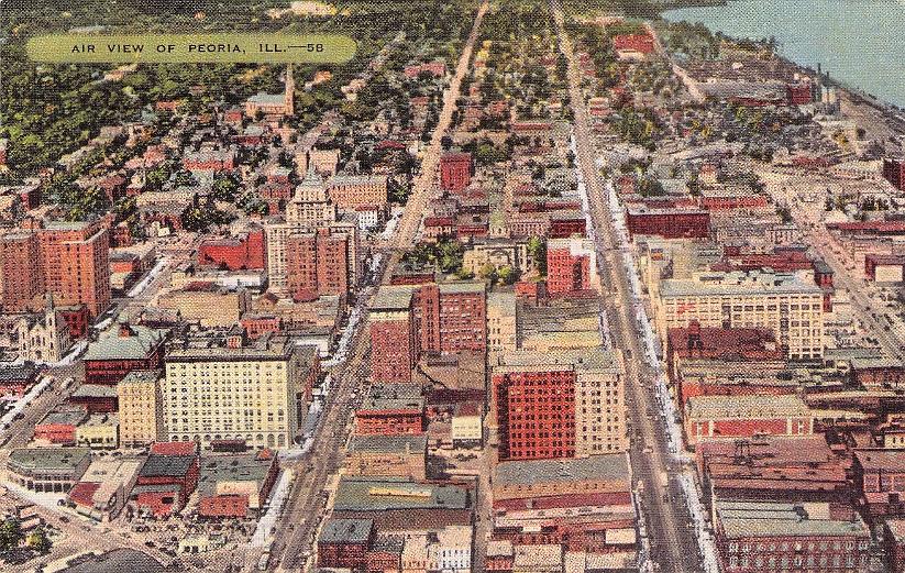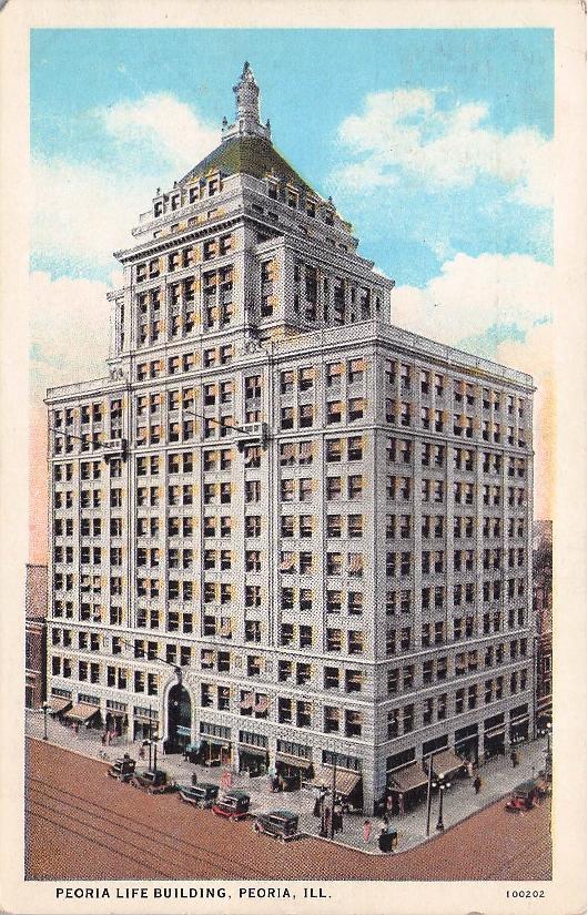 Post cards: Downtown aerial view [linen]; Commercial Bank [1927]; Peoria Life Building [1932]; Jefferson Hotel [2 views, on a drawing, one c.1932] Hotel Pere Marquette; Carnegie’s Dining [Continental]; St. Francis Hospital [linen] Children’s Hospital [chrome]; Court House [1907]; YMCA [c.1910]; White School [c.1910]; Shrine Mosque [linen]; First Federated Church; Sacred Heart Church [linen]; Recreation Bldg. [1912]; Club House [1906]; Yacht Club [chrome];54 park scenes, including zoo; food; Cedar Street Bridge [linen]; Whitehouse Crossing Locks [linen]