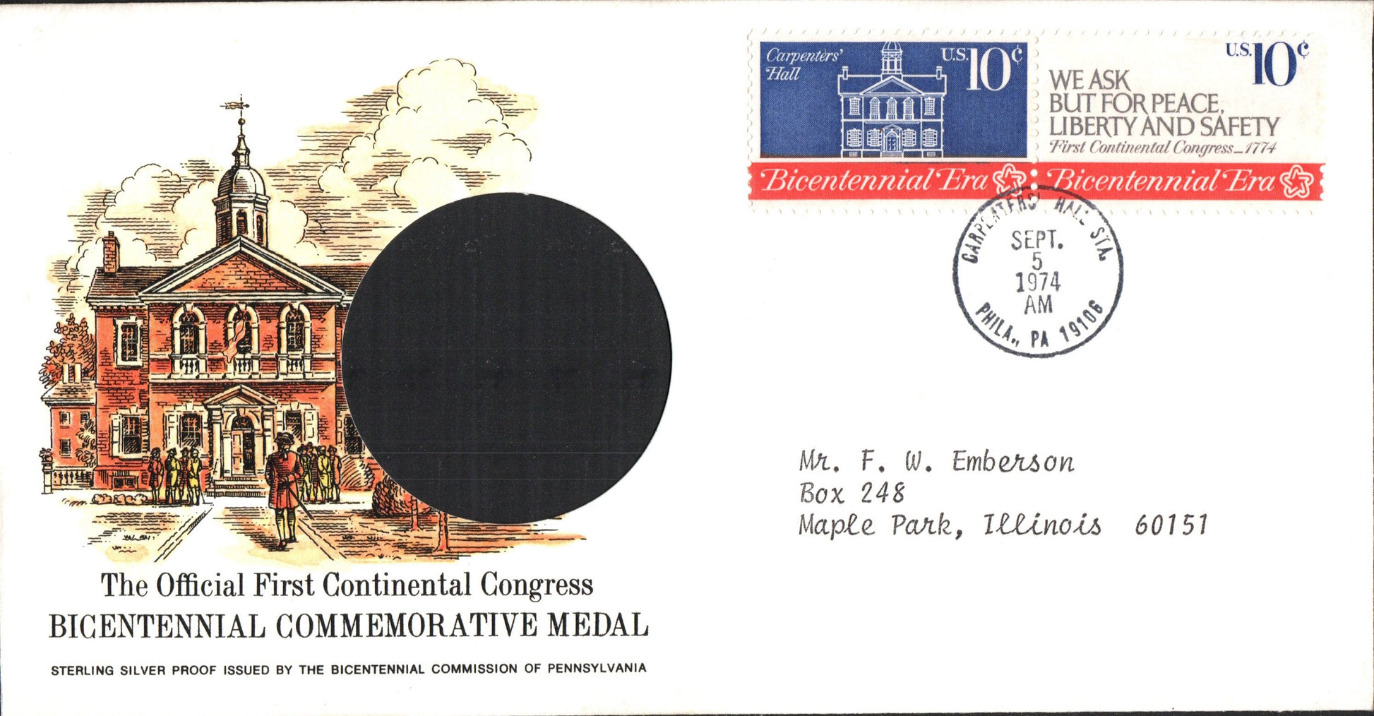 Carpenter’s Hall S 1974 cds on cover with a hole where a medallion should be
