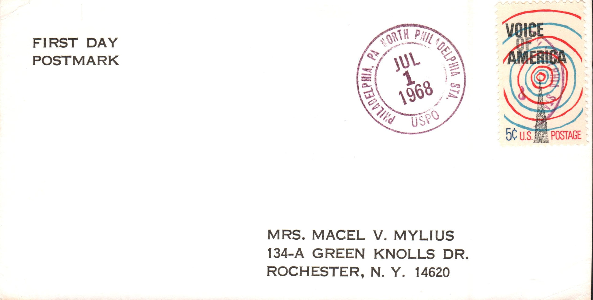 North Philadelphia Sta. 1968 round dater on cover-sized card, FD of postal status
