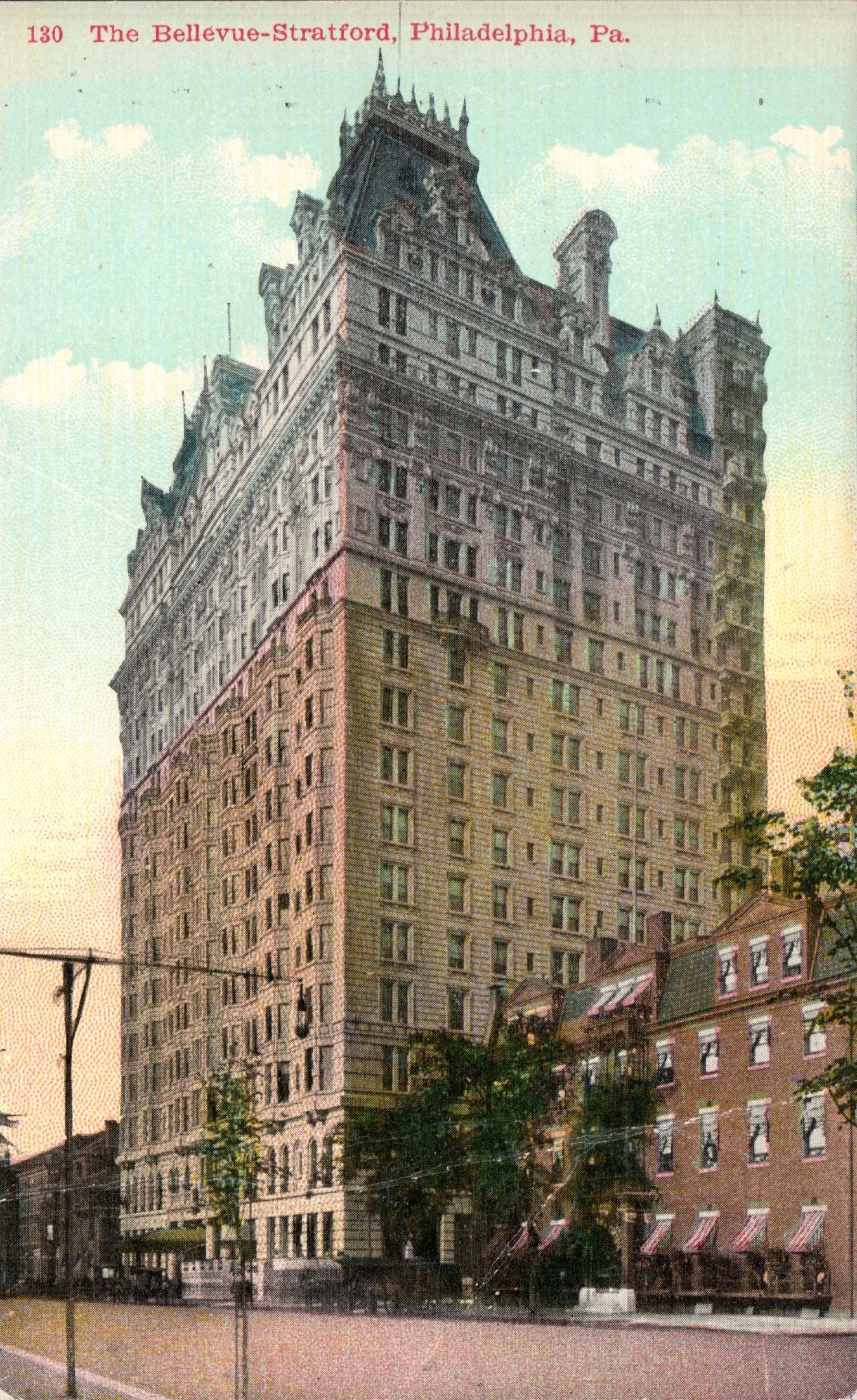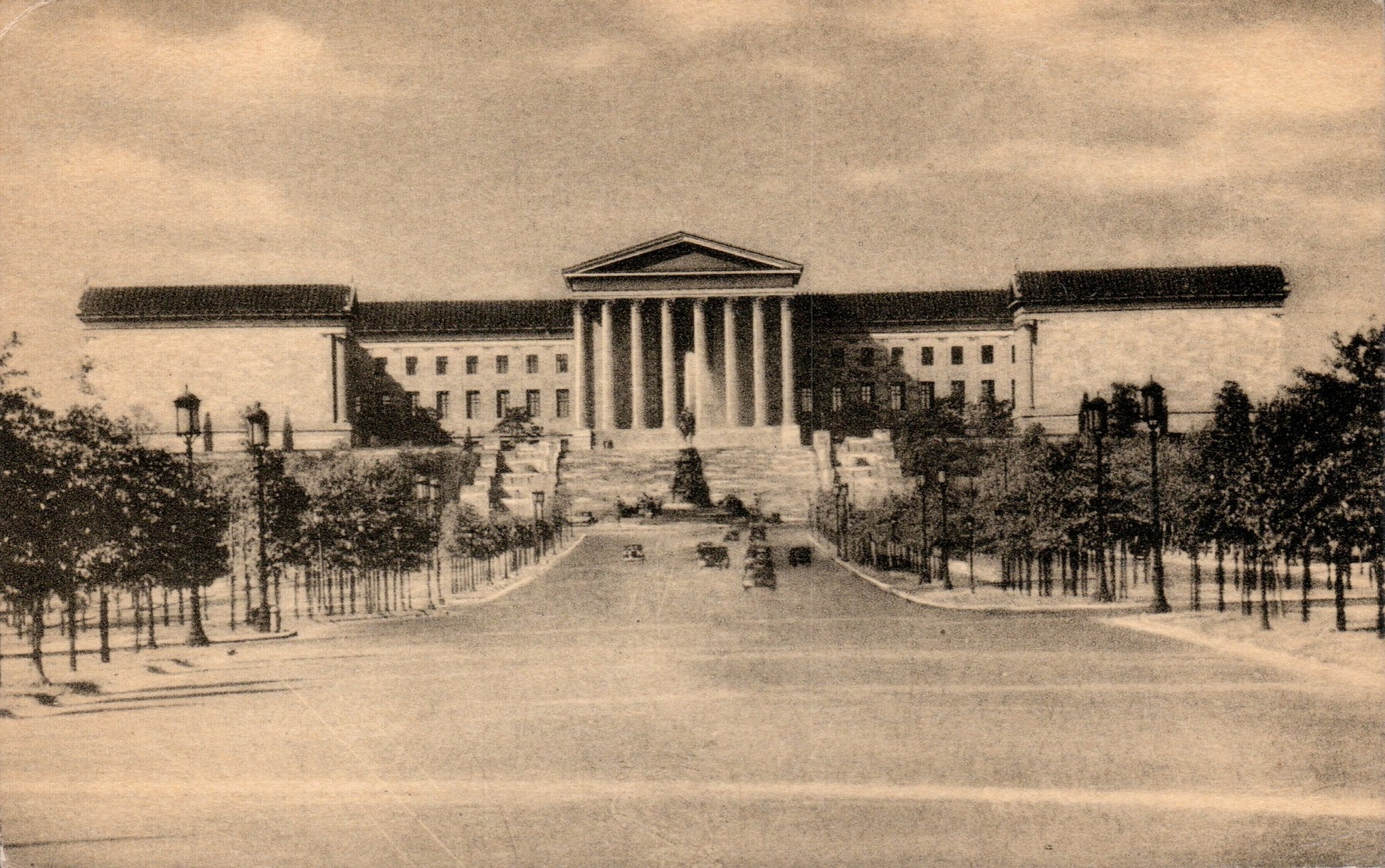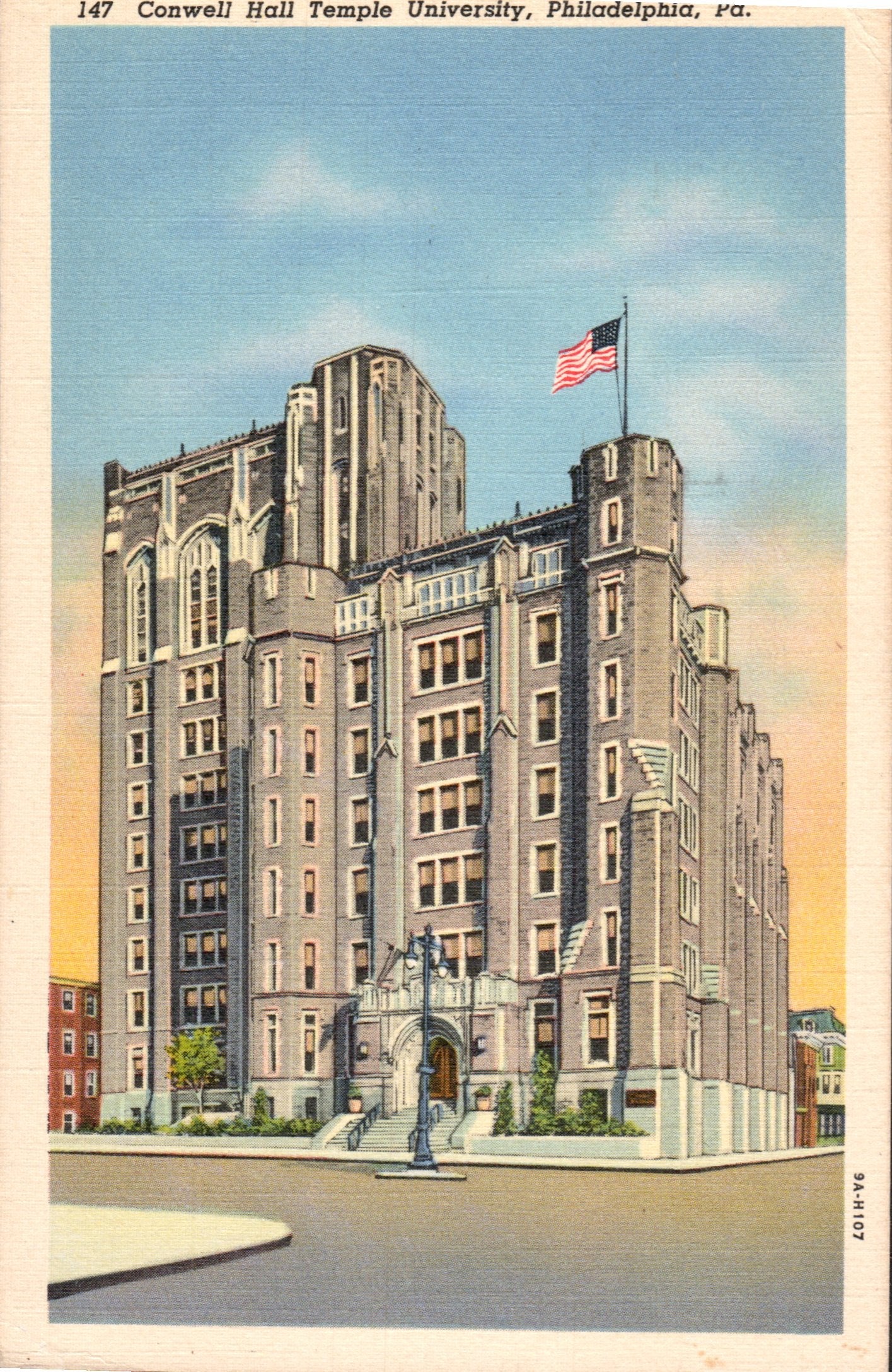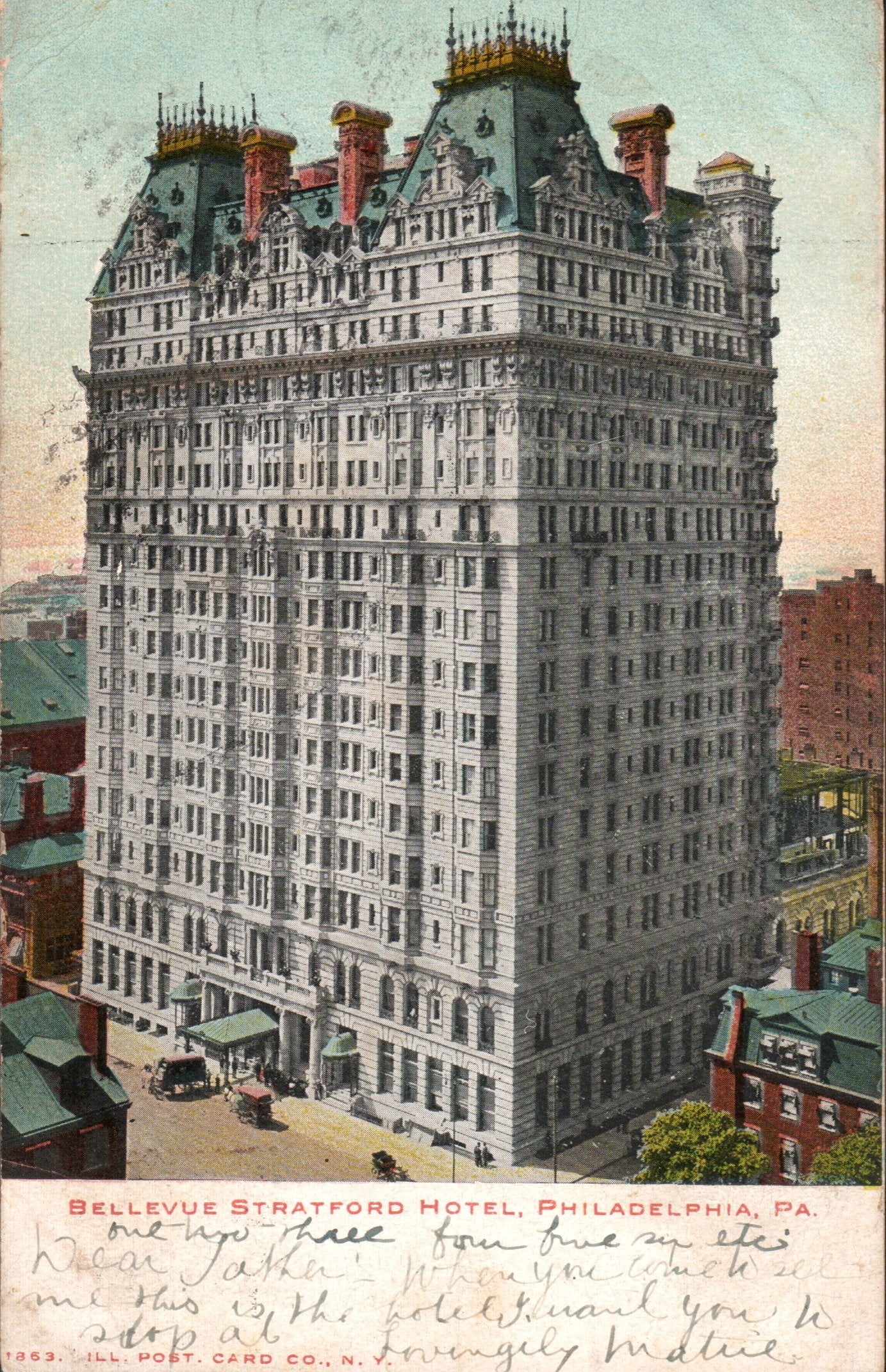 Post cards: “Broad Street North from Spruce” (B&W. corner damage; “Fidelity-Philadelphia Trust” art work [linen]; “Newspaper Building (B&W); “Bellevue Stratford Hotel” [2 views, 1906, c.1910]; Bookbinder’s Restaurant dining room [chrome]; Post office [linen]; City Hall [2views, 1916 and B&W];Wm. Penn statue atop City Hall [2 linen views]; Independence Hall [8 exterior views, 7 interior or thematic]; “Congress Hall” [linen]; “Public Library” [linen]; “Museum of Art” [3 views]; “Rodin Museum” [2 linen views]; “Drexel Institute of Technology” [linen]; Girard College” [3 early views]; “Cornwall Hall Temple University” [linen]; Temple University Hospital” [sepia]; Christ Church” [5 views]; “St. John’s Church” art [chrome]; “St. Peter’s and St. Paul’s Cathedral” [line ]; “Mouth of the Schuylkill River” [c.1910]; “Boat Houses, Schuylkill River” [c.1910]; “Elfreth’s Alley” [3 chrome views]; Betsy Ross