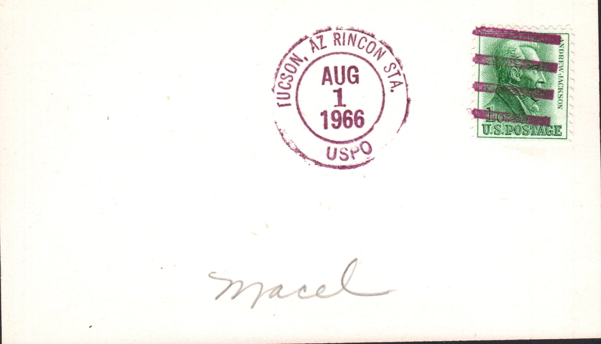 Student Union Sta. (Tucson) (1966-1980) 1966 round dater on back of cover-sized card
