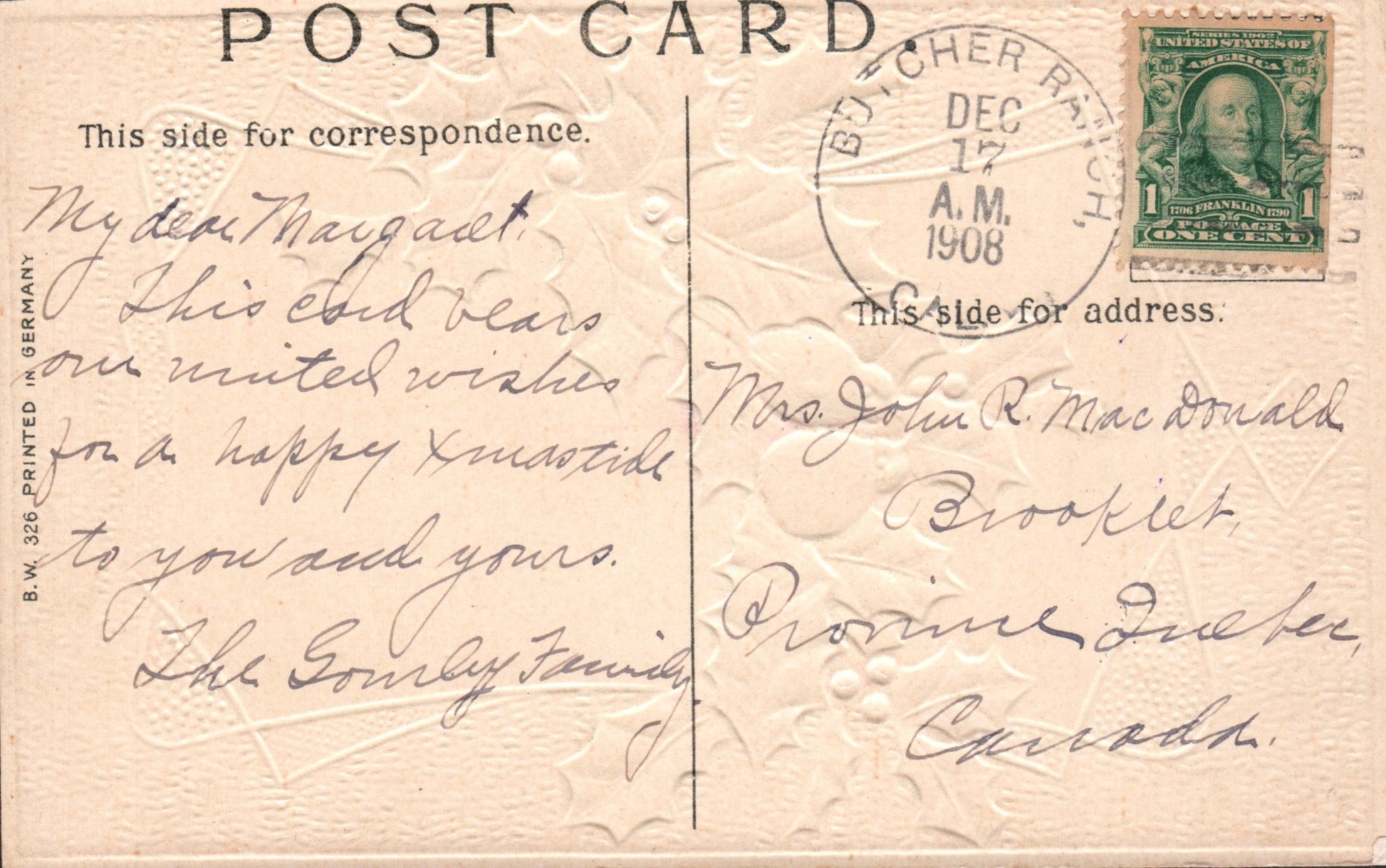 - Butcher Ranch (1871-1935) 1908 4-bar on post card