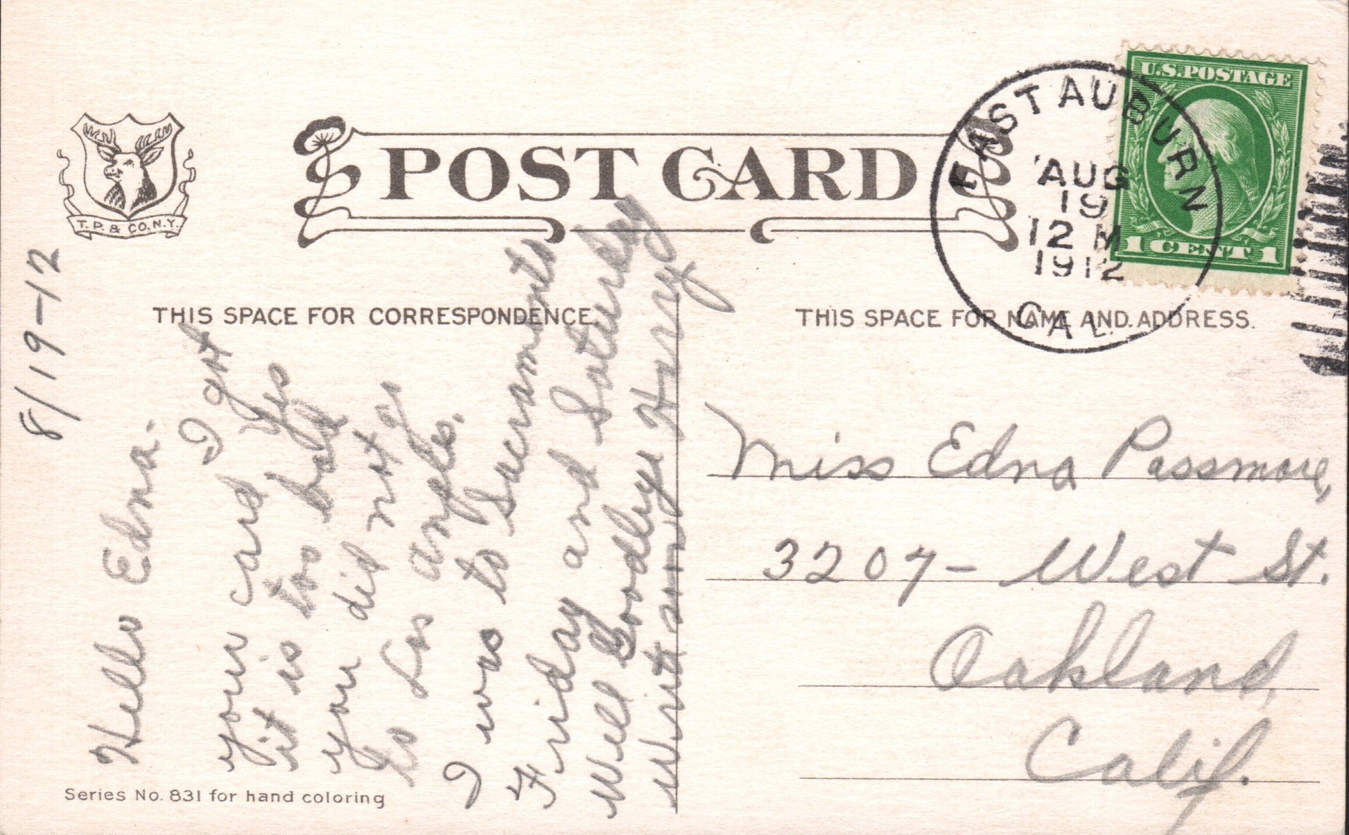 - East Auburn (1902-1919) 1912 duplex on post card on cacheted cover, Historical marker