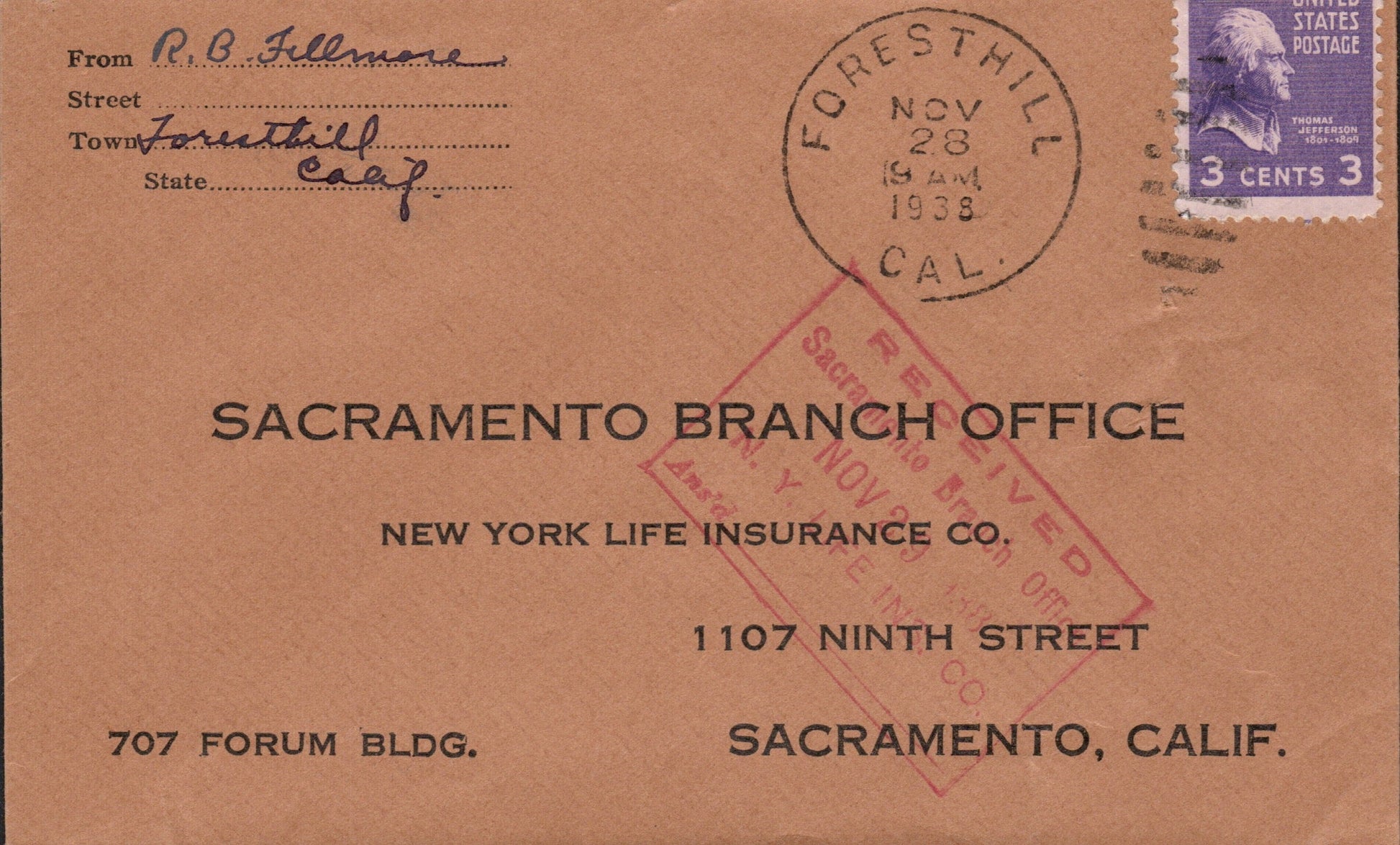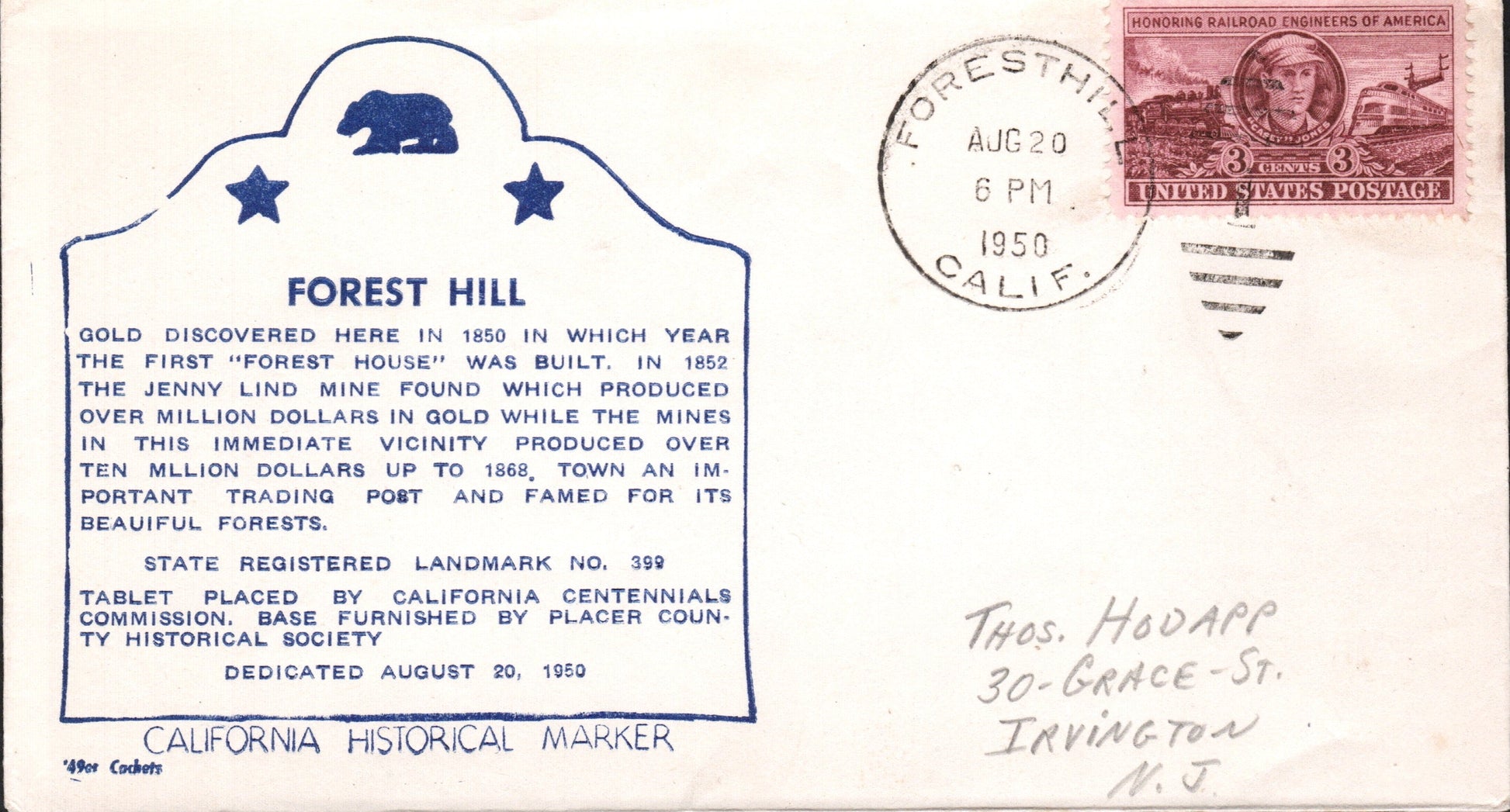 - Foresthill 1938 duplex on cover; 1950 duplex on cacheted cover, historical marker info