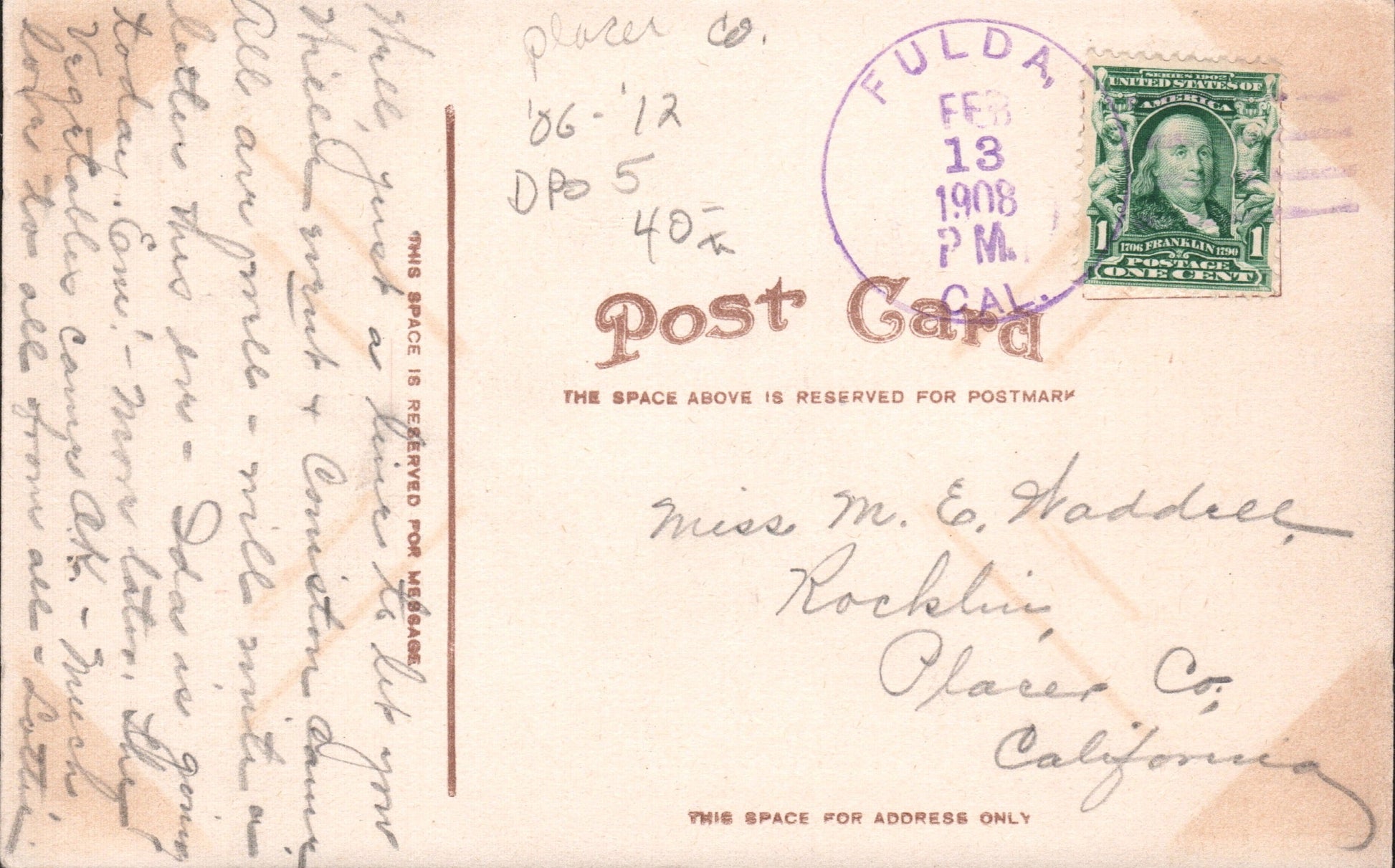 - Clipper Gap (1866-1960) light 1909 4-bar on post card