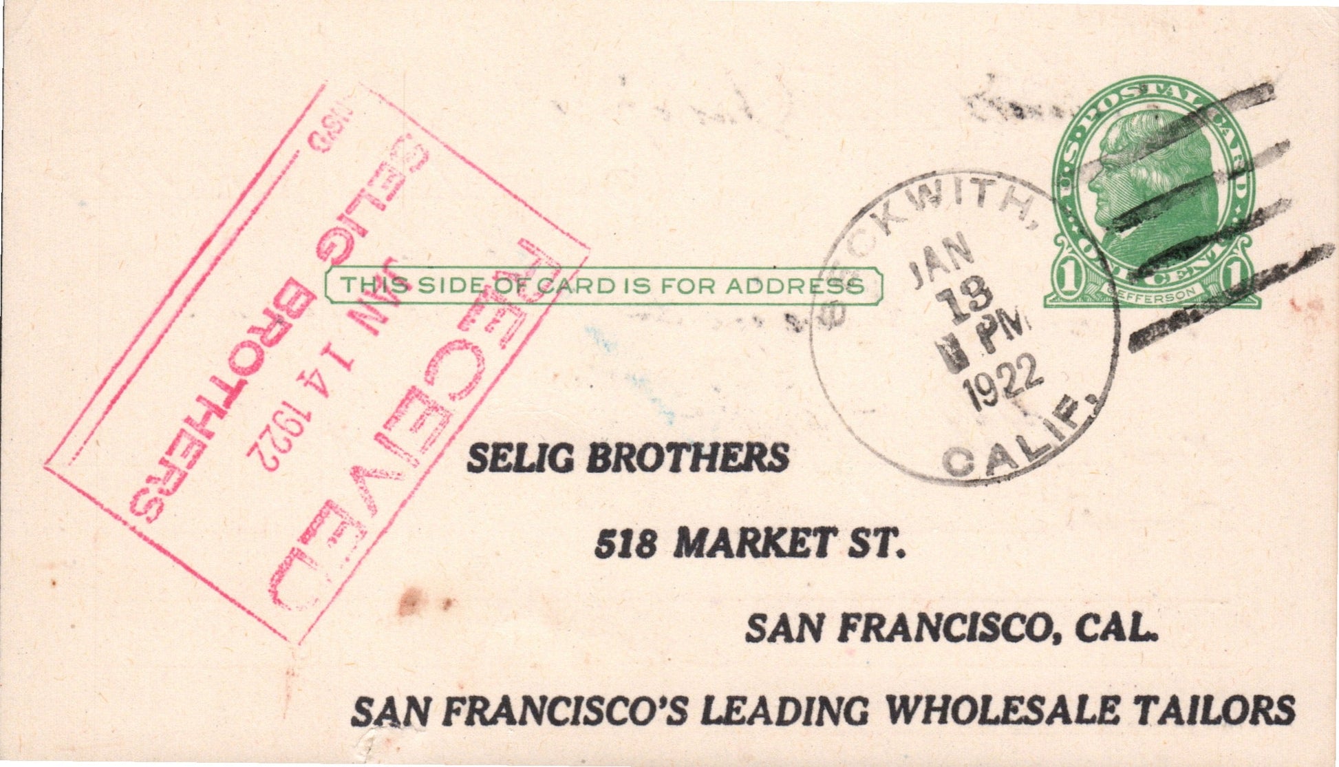 Beckwith (1870-1932, name change) 1911 Doane on post card; 1922 4-bar on Postal Card