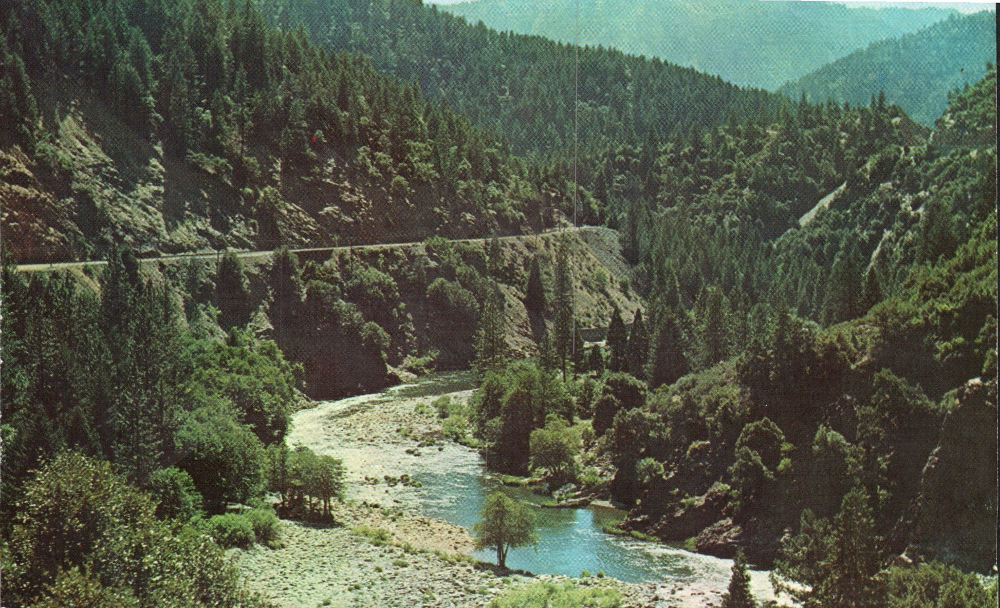Post cards: 2 Feather River Canyon [chrome]; Lake Almanor [chrome]; Twin Bridges [chrome]; “Round Valley Lake” [realphoto]