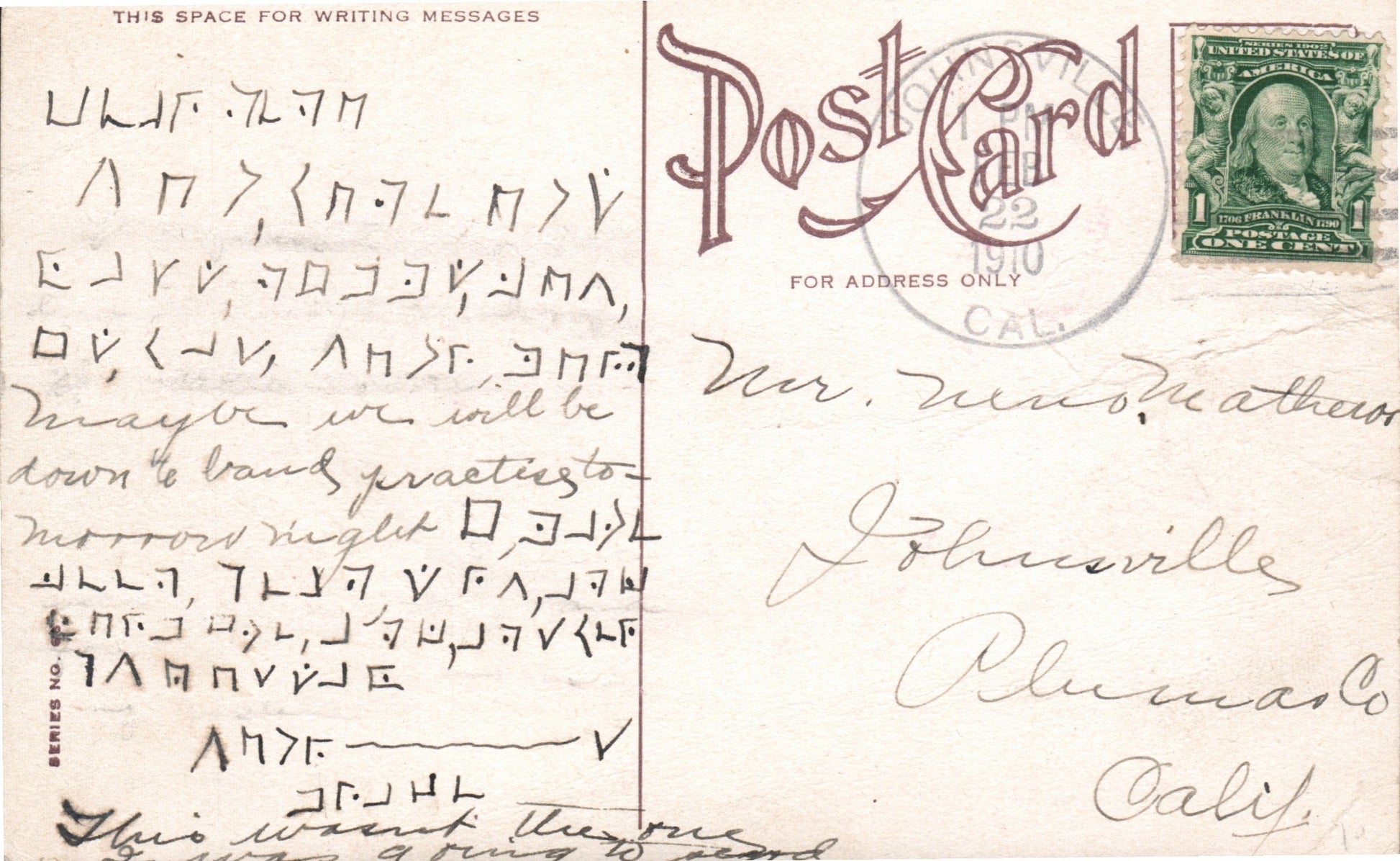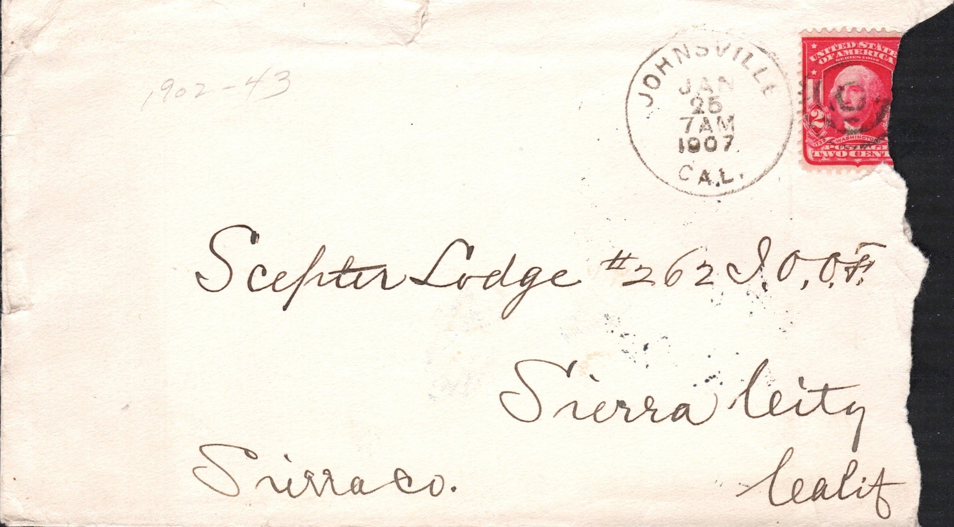 Johnsville (1882-1953) 1907 cds & target killer on cover, ragged right into stamp, Sierraville and Sierra City backstamps; light 1910 4-bar on post card