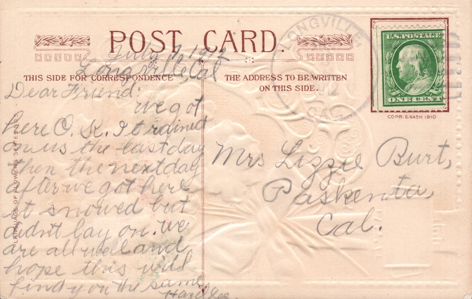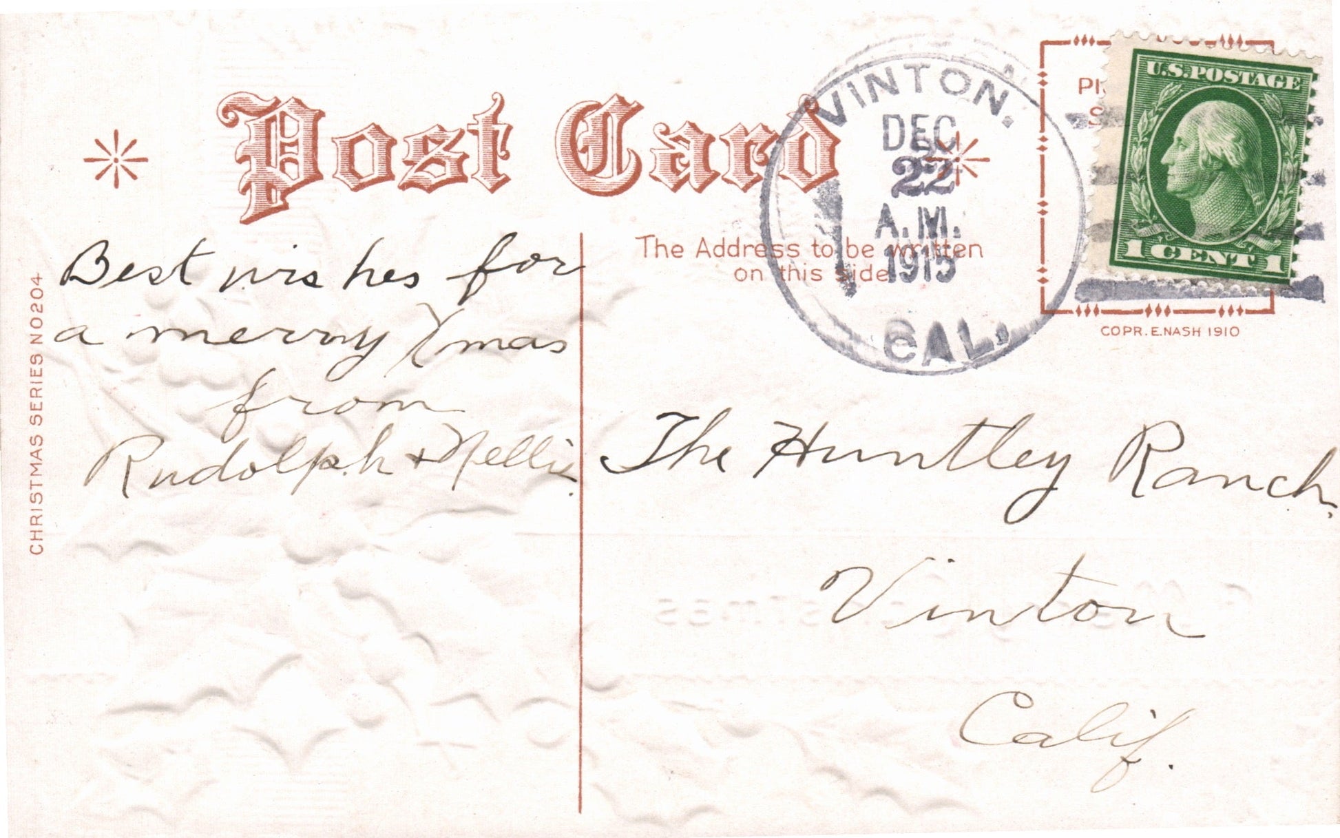Spanish Ranch (1861-1913) light 1912 4-bar on post card, stamp removed